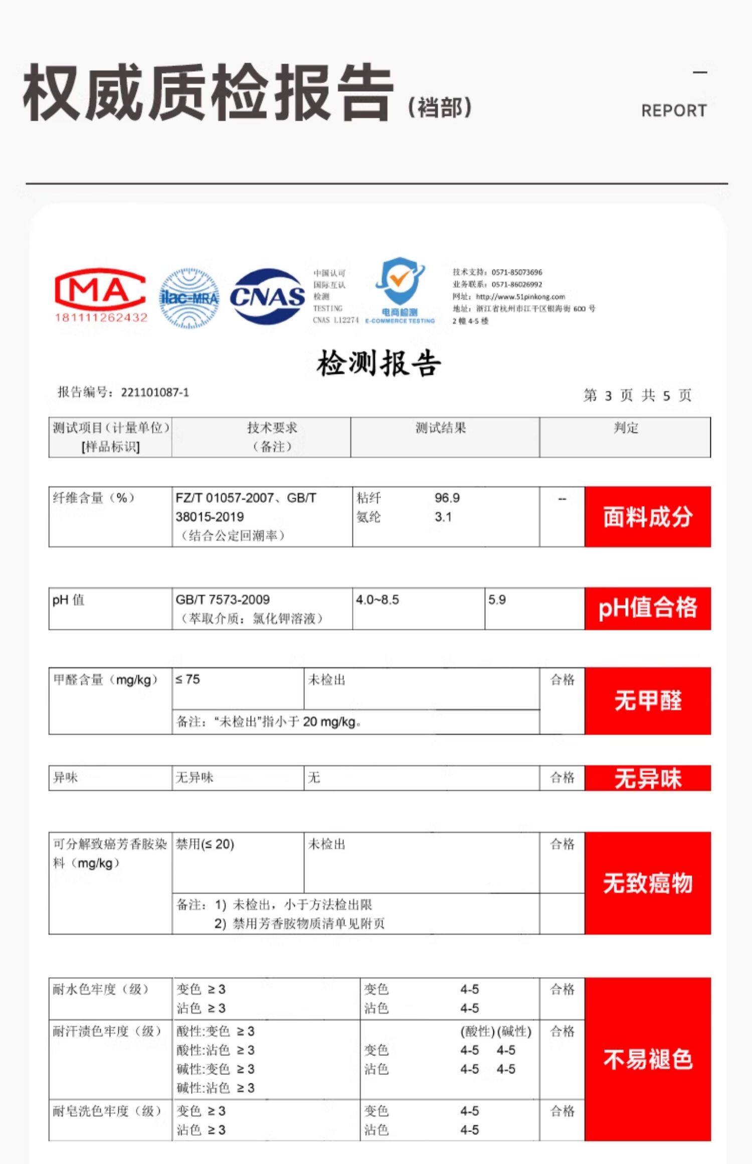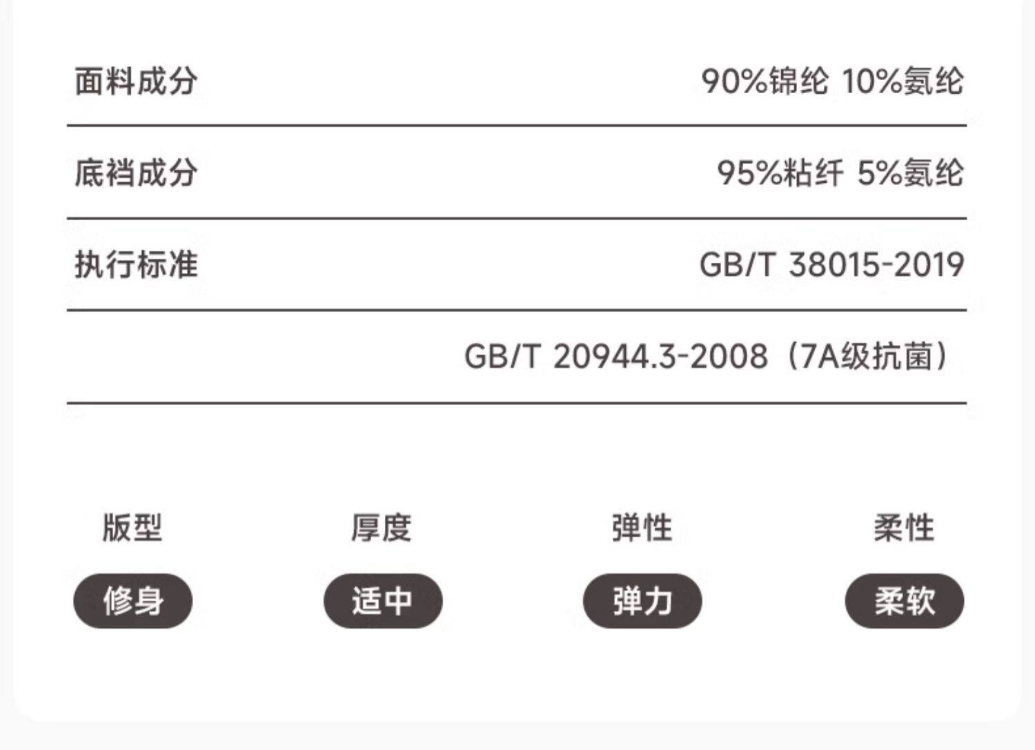 | 襠部材質成分 | 粘膠纖維(粘纖)95% 聚氨酯彈性纖維(氨綸)5% |