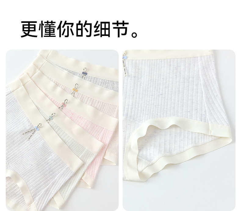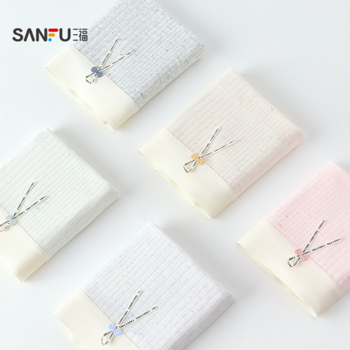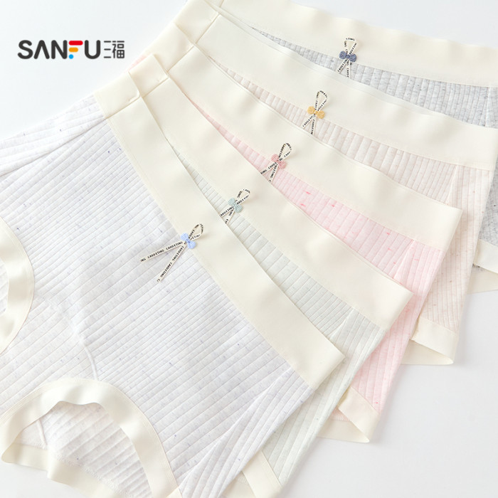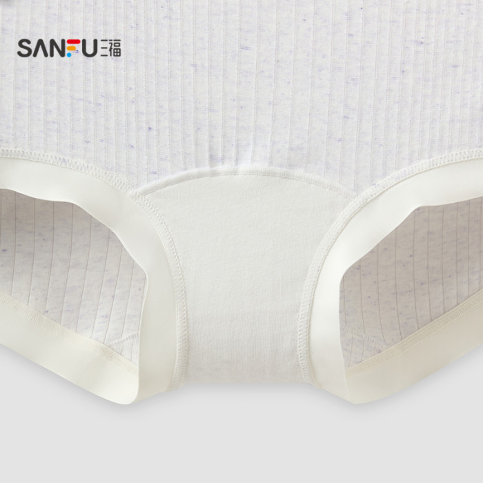 三福【3條裝】女中腰內褲抗菌底襠無痕邊印花平角褲少女淺色底褲