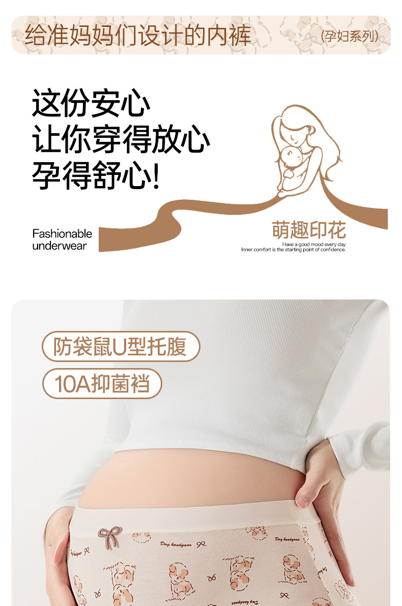 帕蘭朵孕婦內褲女10A抑菌襠懷孕期專用高腰托腹包臀A類純棉三角褲