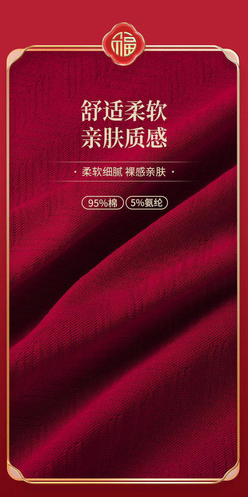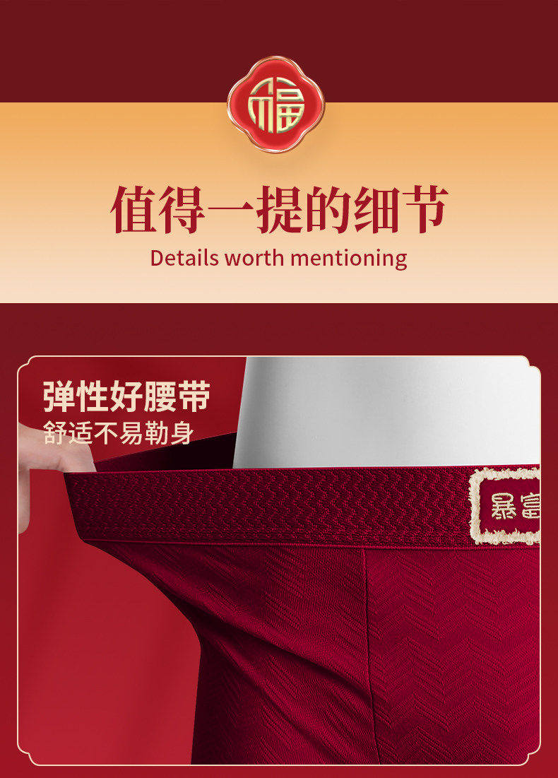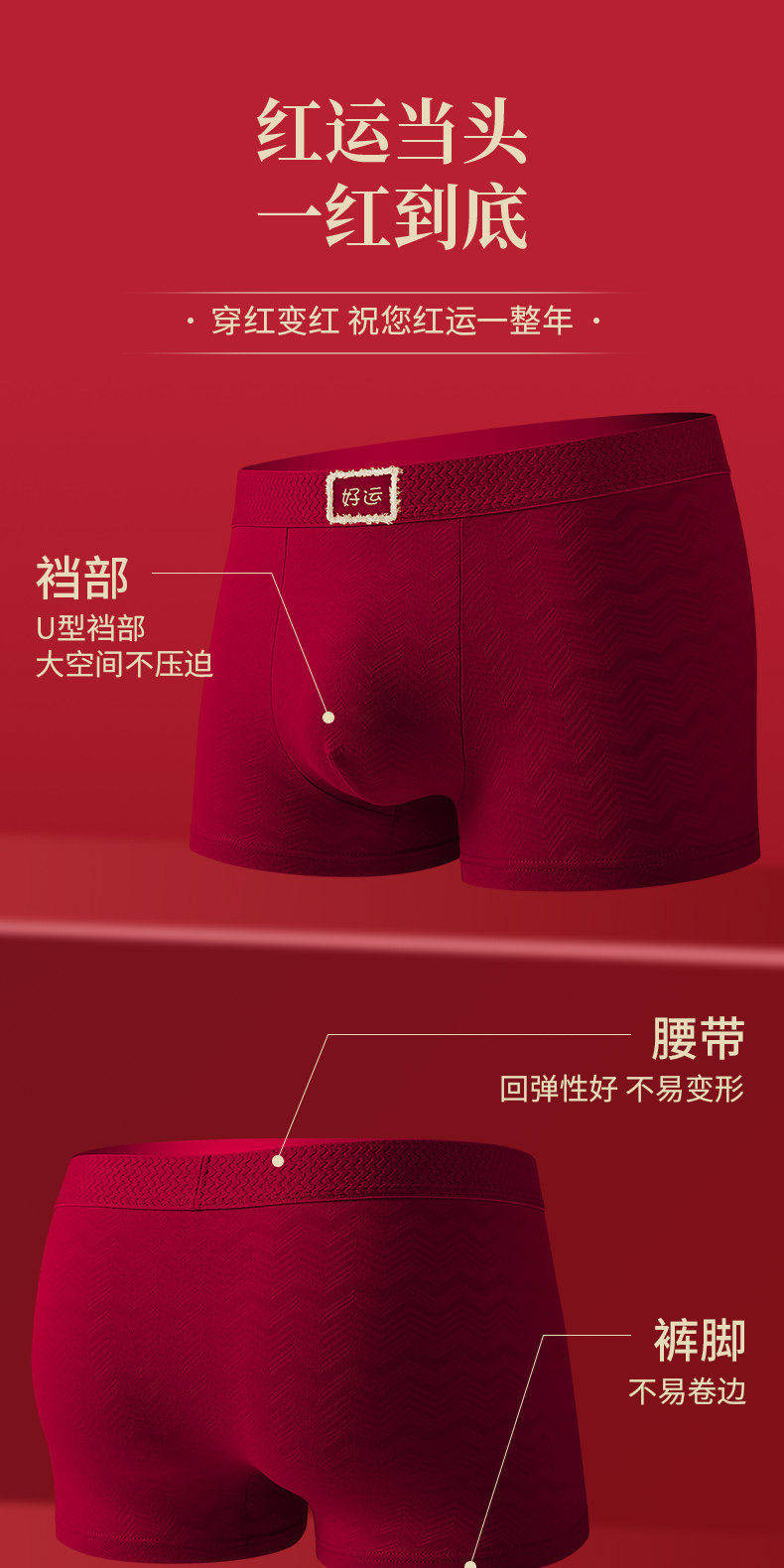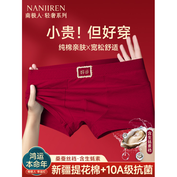 南極人本命年男士內褲男生屬馬年大紅色純棉四角平角短褲結婚男款