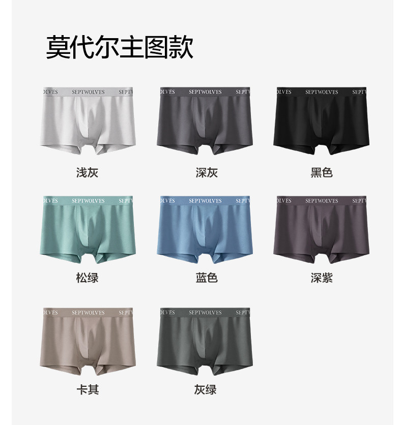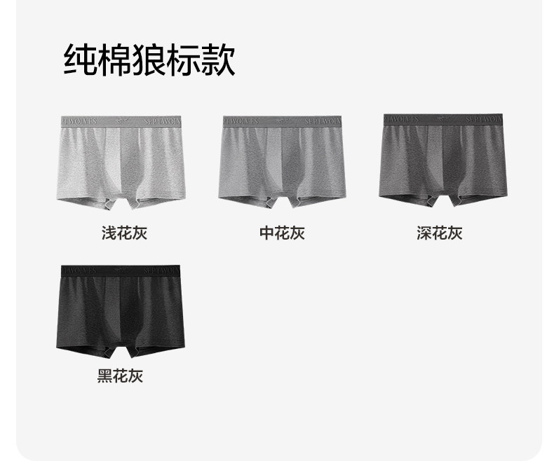 七匹狼男士內褲純棉四角褲男生全棉抗菌褲衩平角短褲大碼褲頭男款