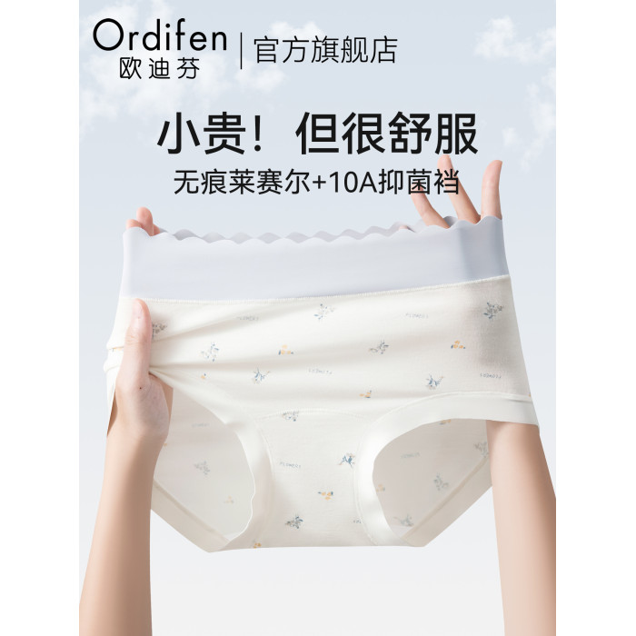 歐迪芬無痕內褲女士2025新款桑蠶絲抗菌襠中腰透氣少女生三角褲頭
