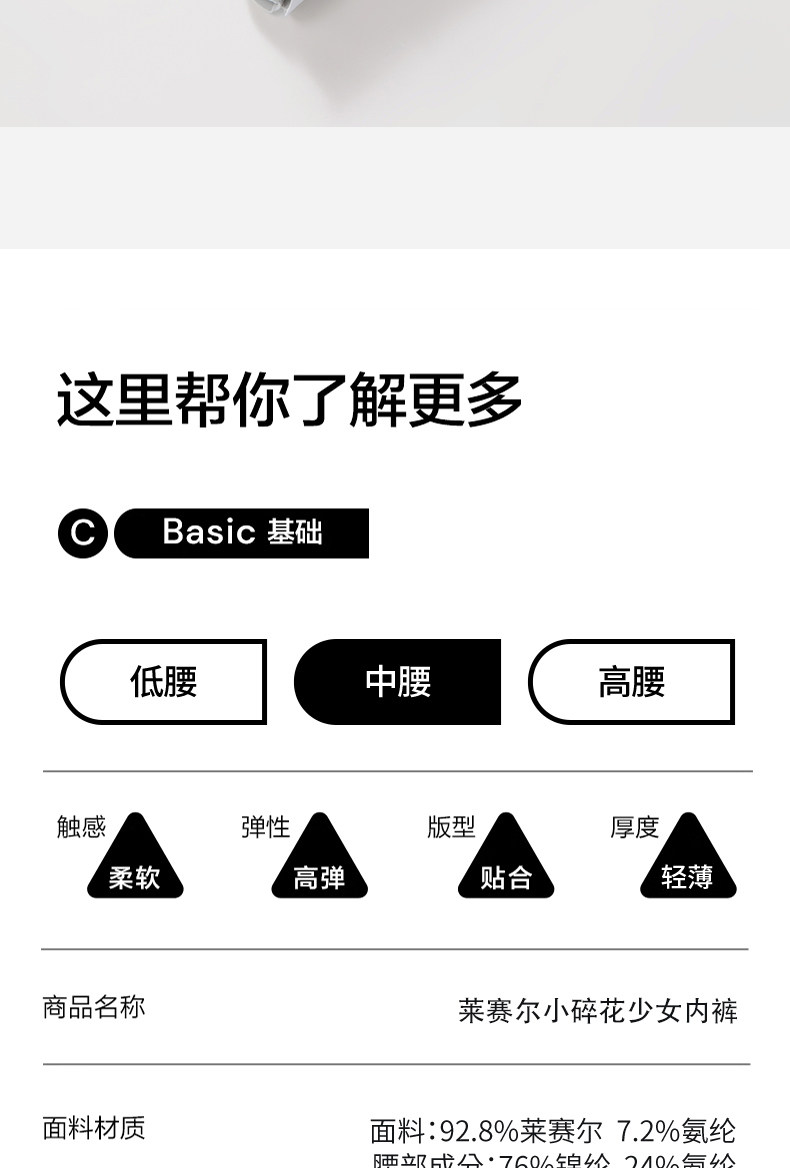 | 大身材質成分 | 萊賽爾纖維(萊賽爾)92.8% 聚氨酯彈性纖維(氨綸)7.2% |