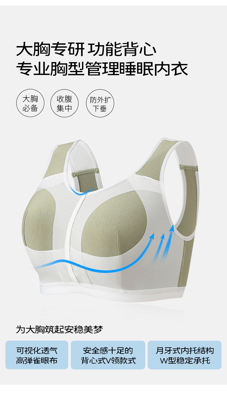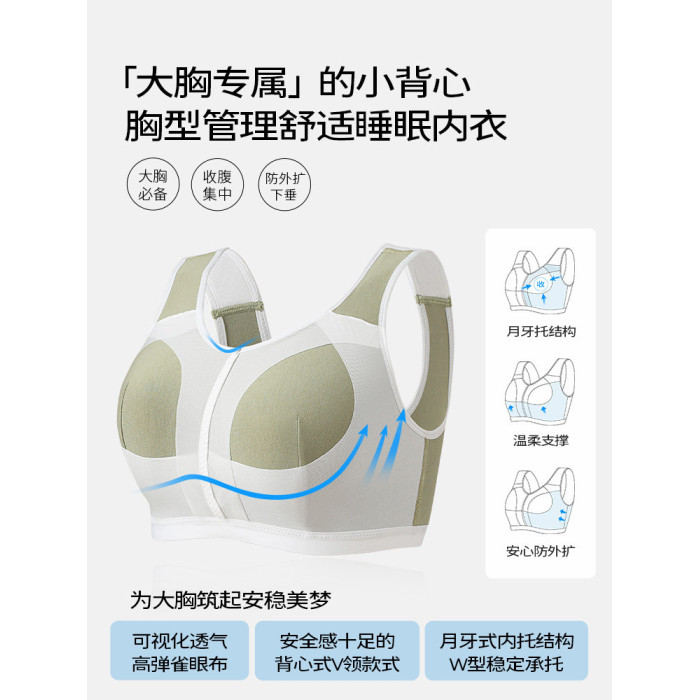 糖粒大碼睡眠內衣防外擴防下垂大胸背心式文胸女夏零束縛薄款晚上