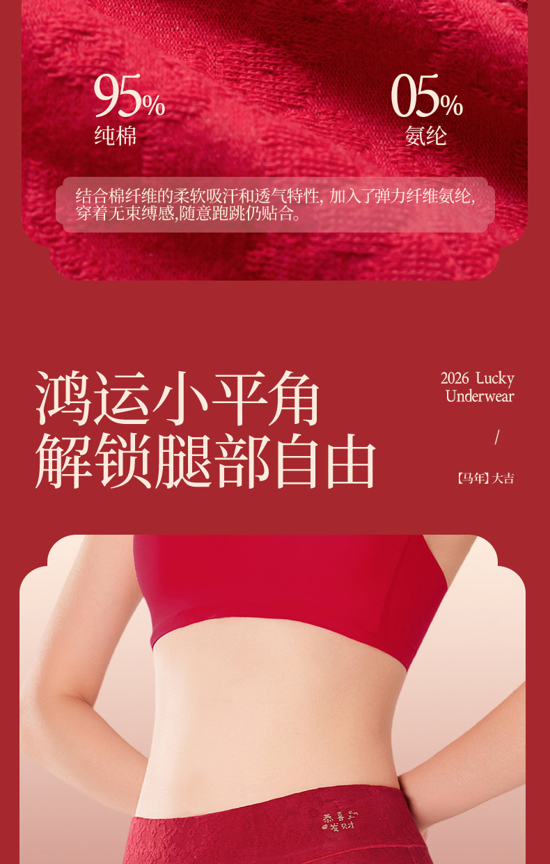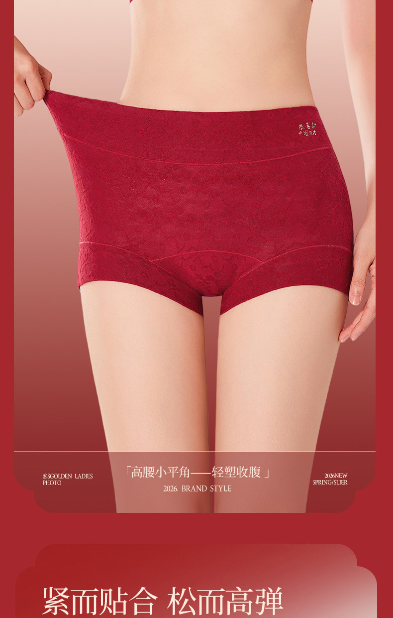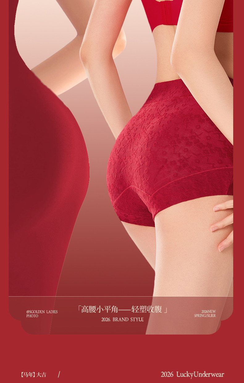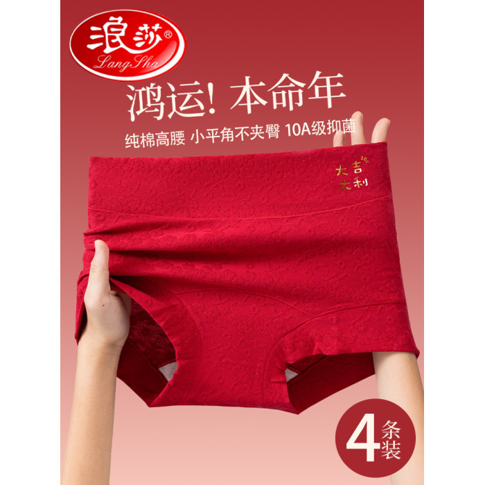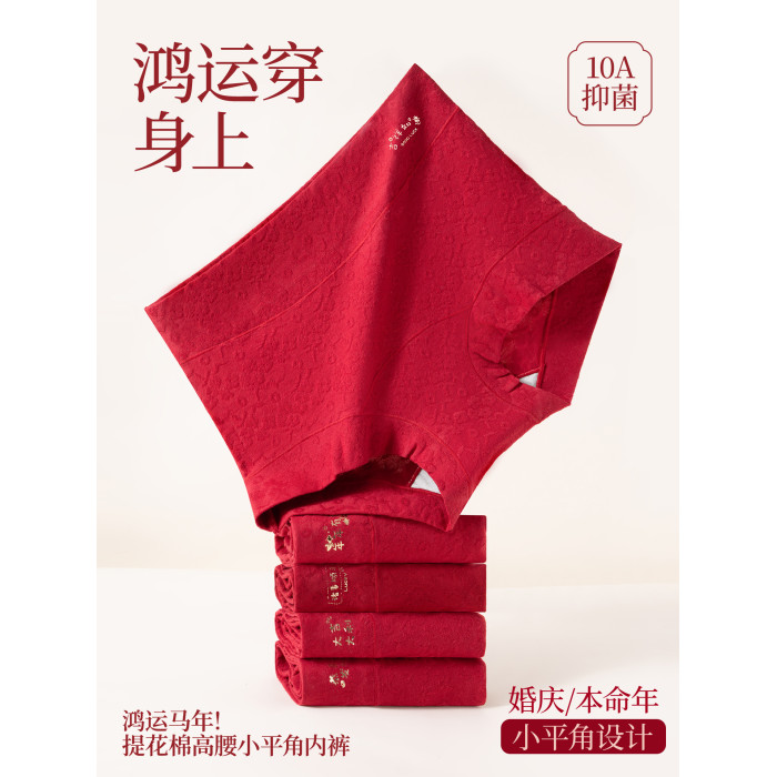浪莎本命年紅色內褲女士純棉平角2026年新款屬馬結婚禮物高腰短褲