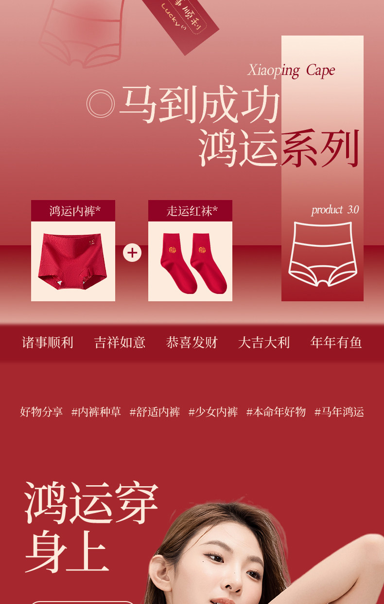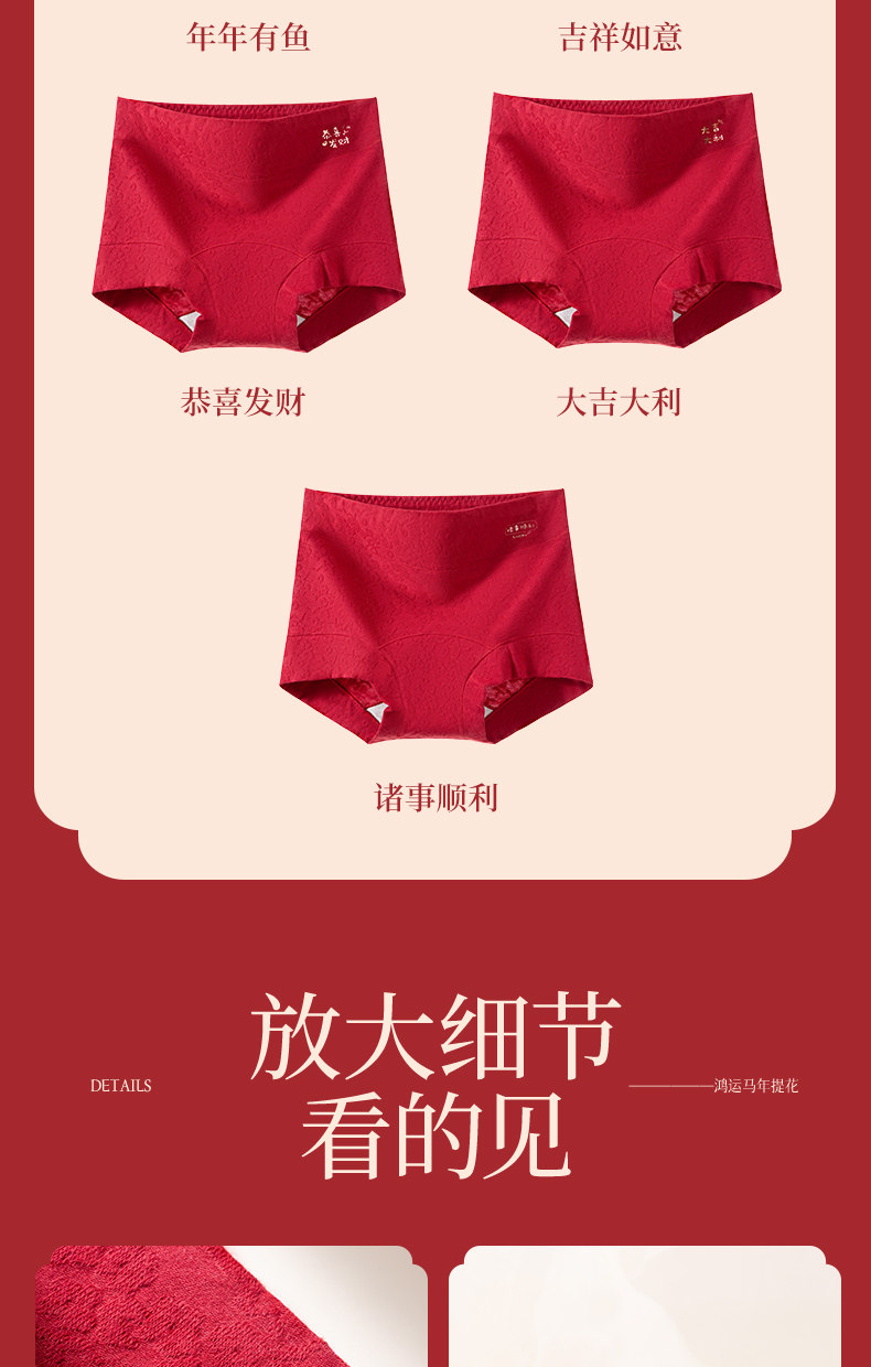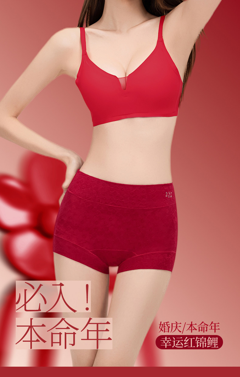 浪莎本命年紅色內褲女士純棉平角2026年新款屬馬結婚禮物高腰短褲
