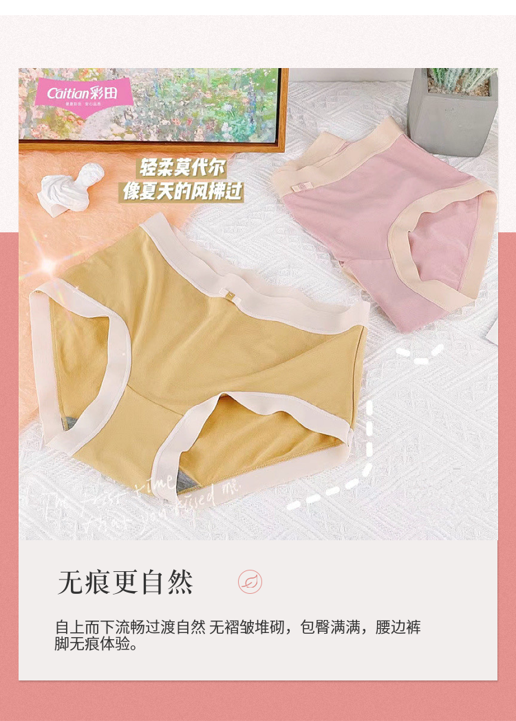 彩田內褲女莫代爾無痕石墨烯純棉襠少女裸感透氣胖MM大碼女士短褲