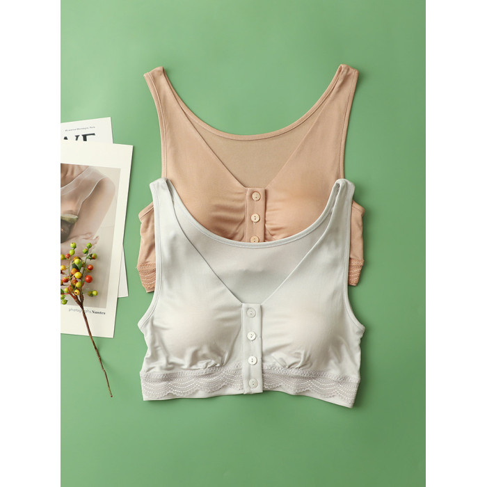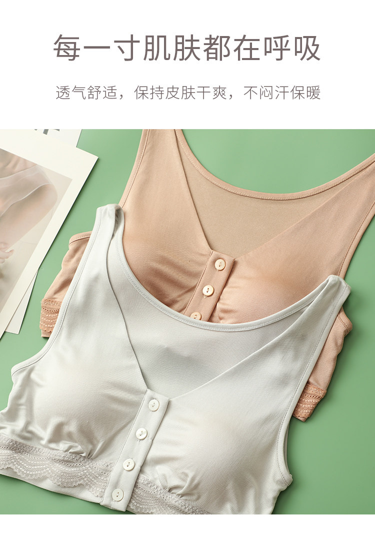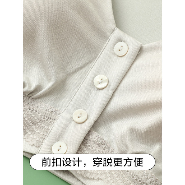100%桑蠶絲無鋼圈光面內衣前釦簡約大碼無痕哺乳文胸背心式全罩杯