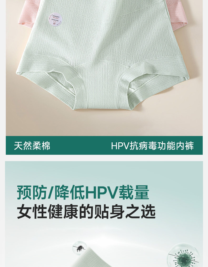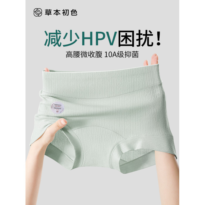 草本初色預防HPV四角內褲女士純棉10A抑菌加長襠高腰微收腹平角褲