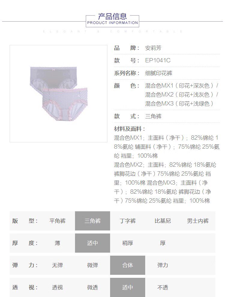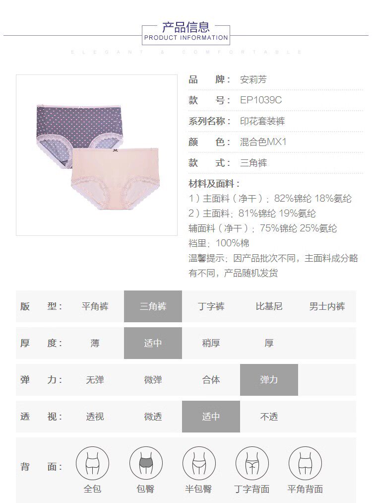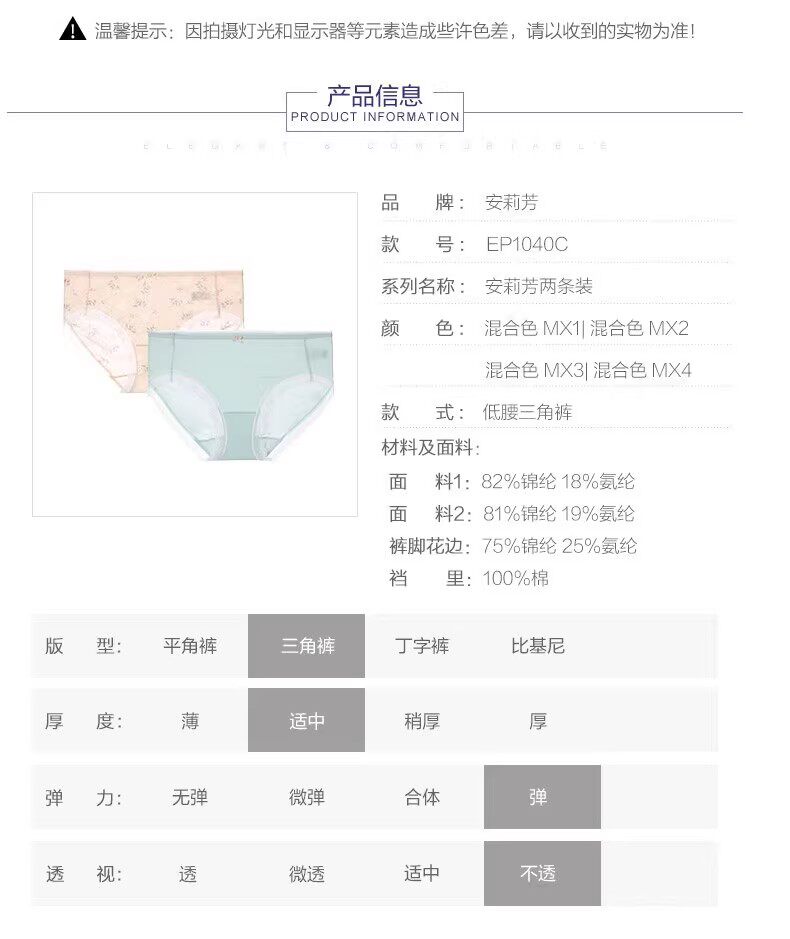 安莉芳牛奶絲滑內褲EP1039C/EP1040C/EP1041C/EP1042C(兩條裝)
