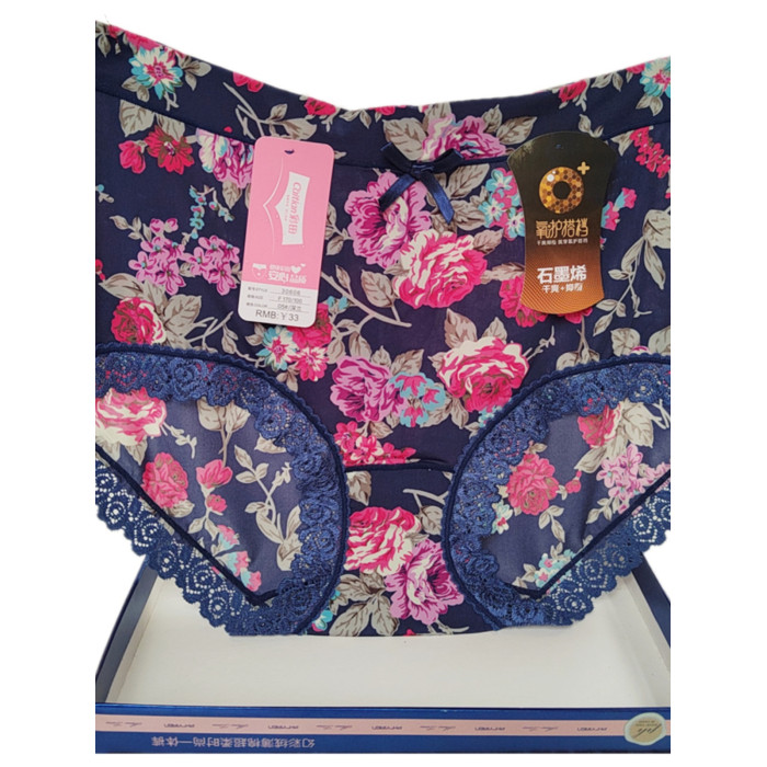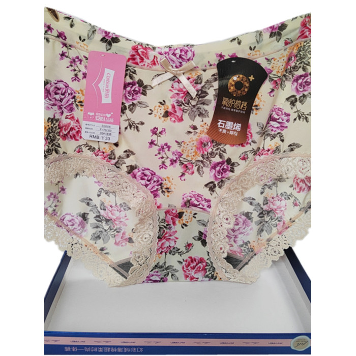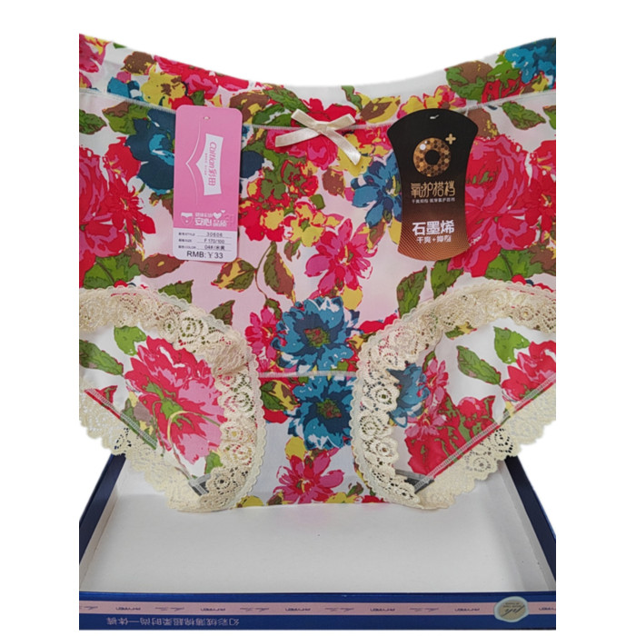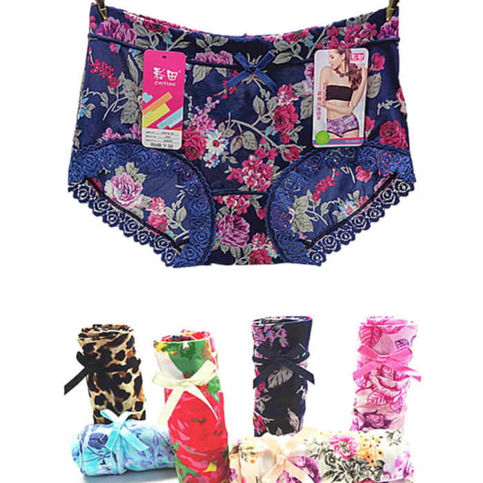 彩田冰絲內褲女士中腰30605薄蕾絲邊速乾抑菌高腰30606大碼組合裝
