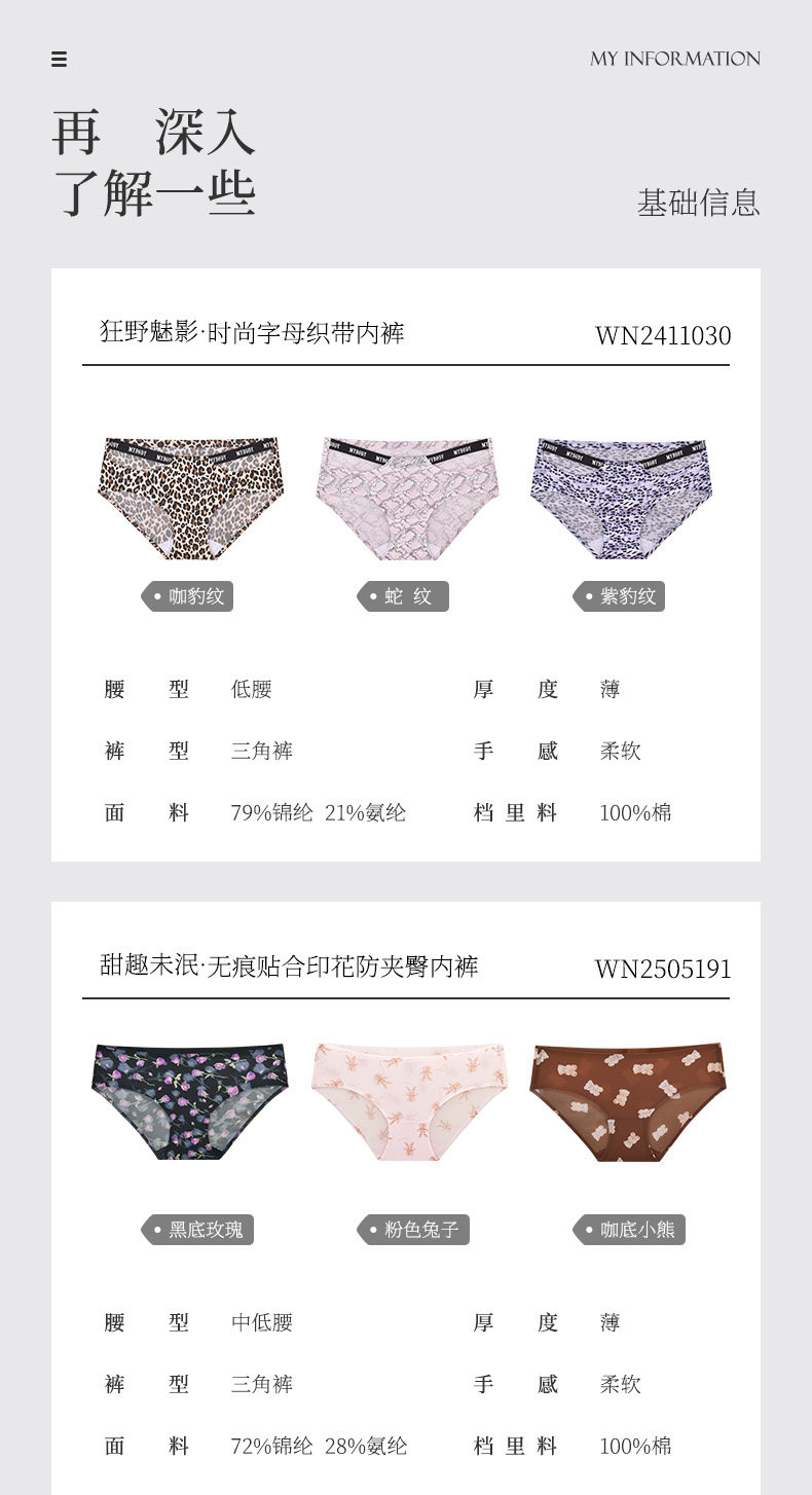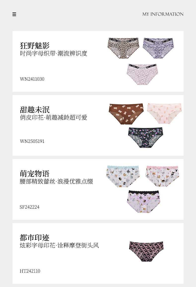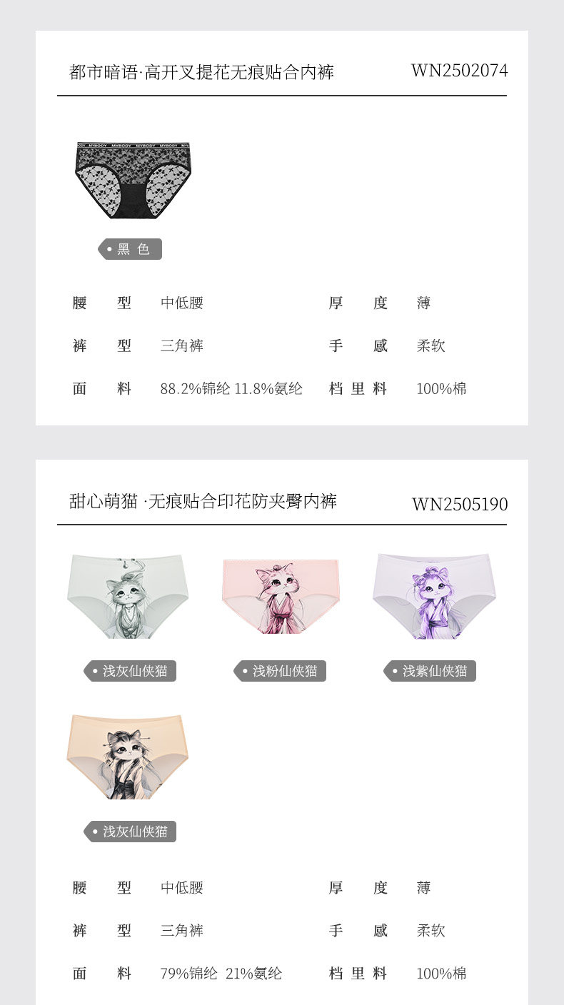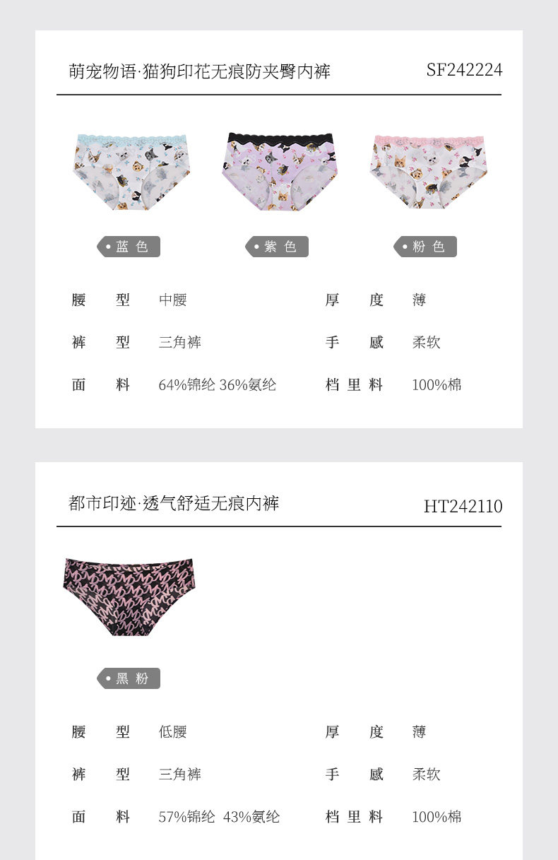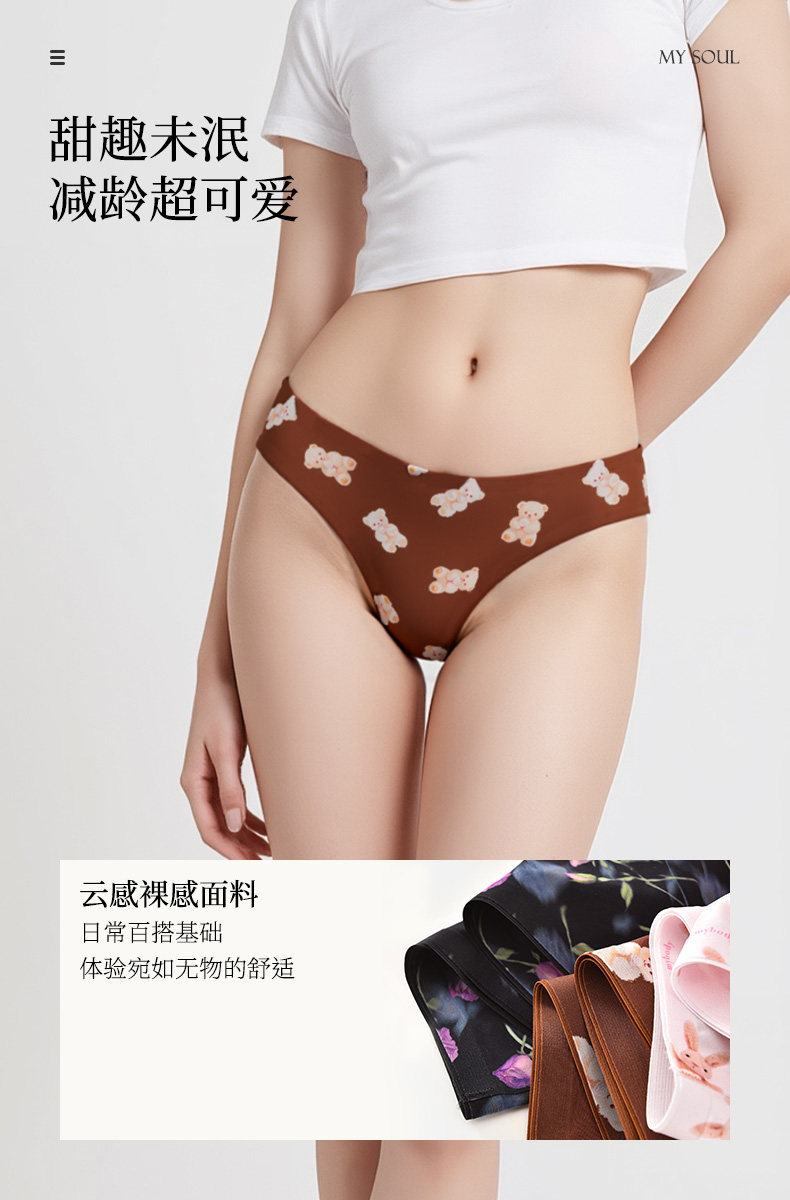 3件129|商場同款MYBODY內褲女時尚可愛萌寵印花無痕低腰三角內褲