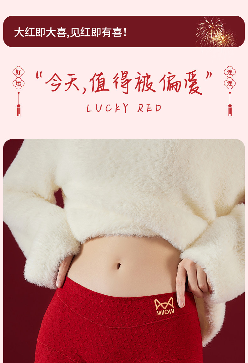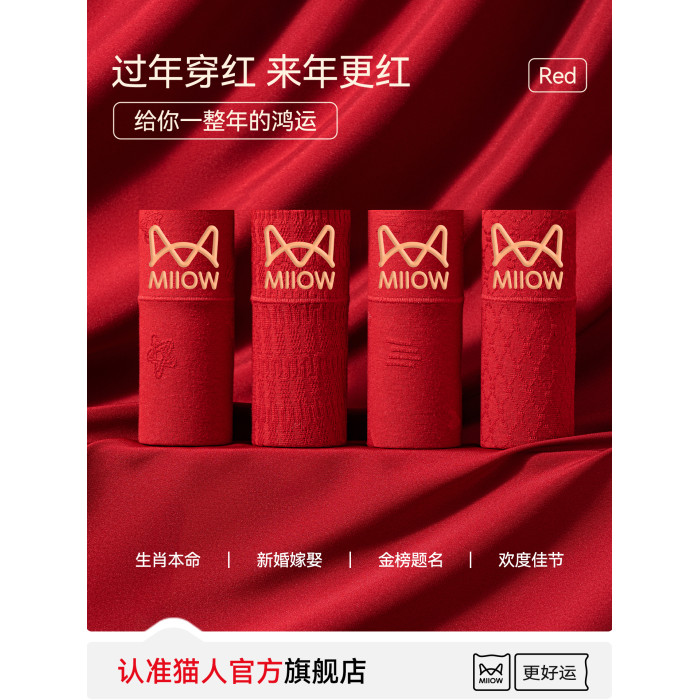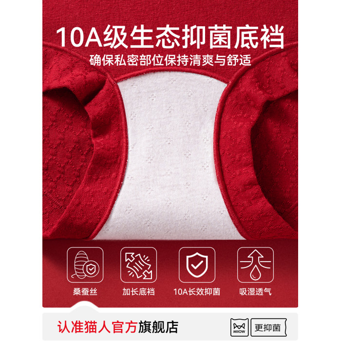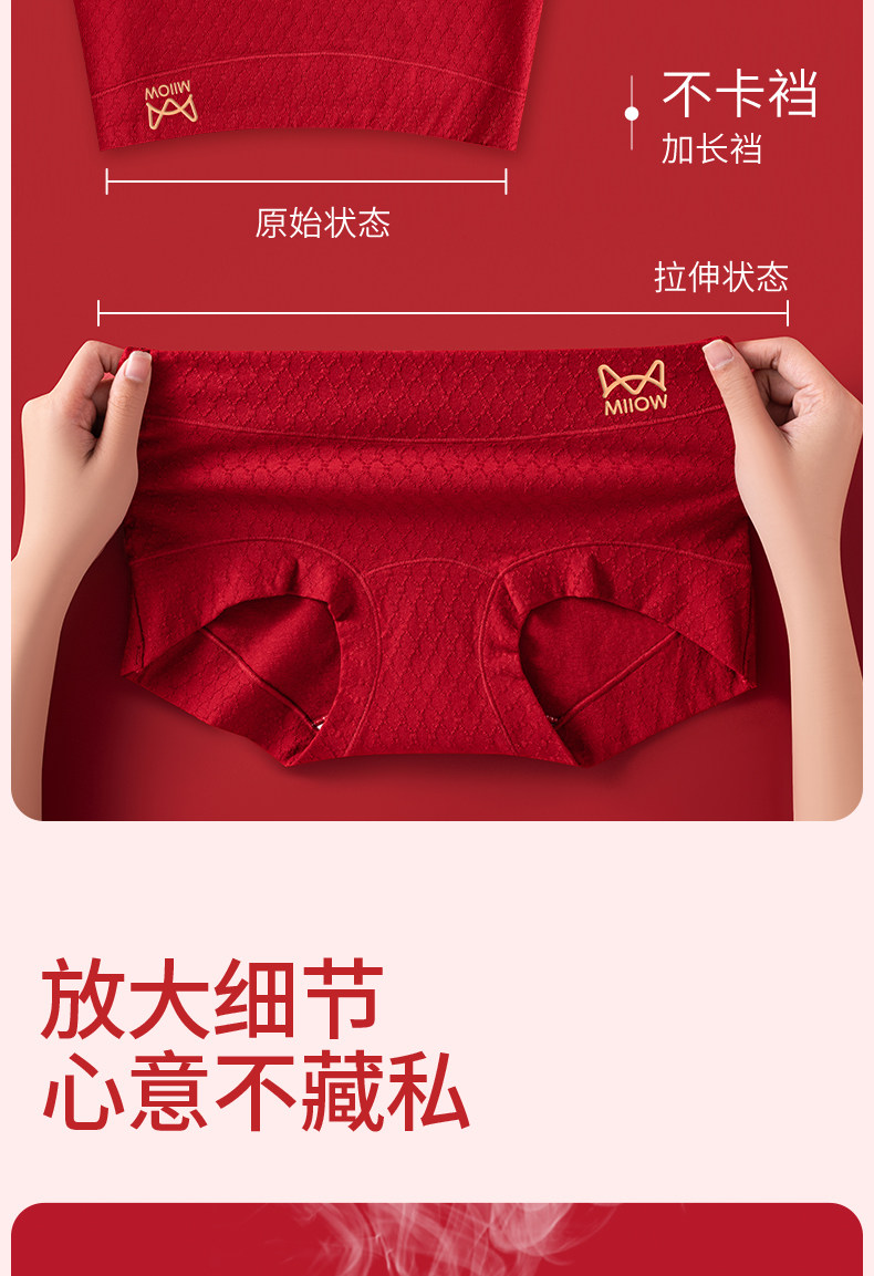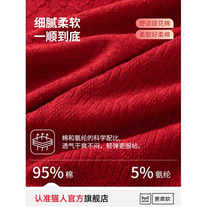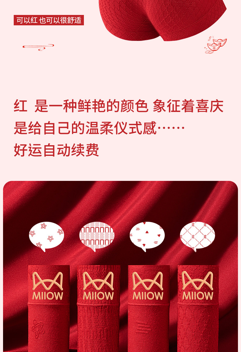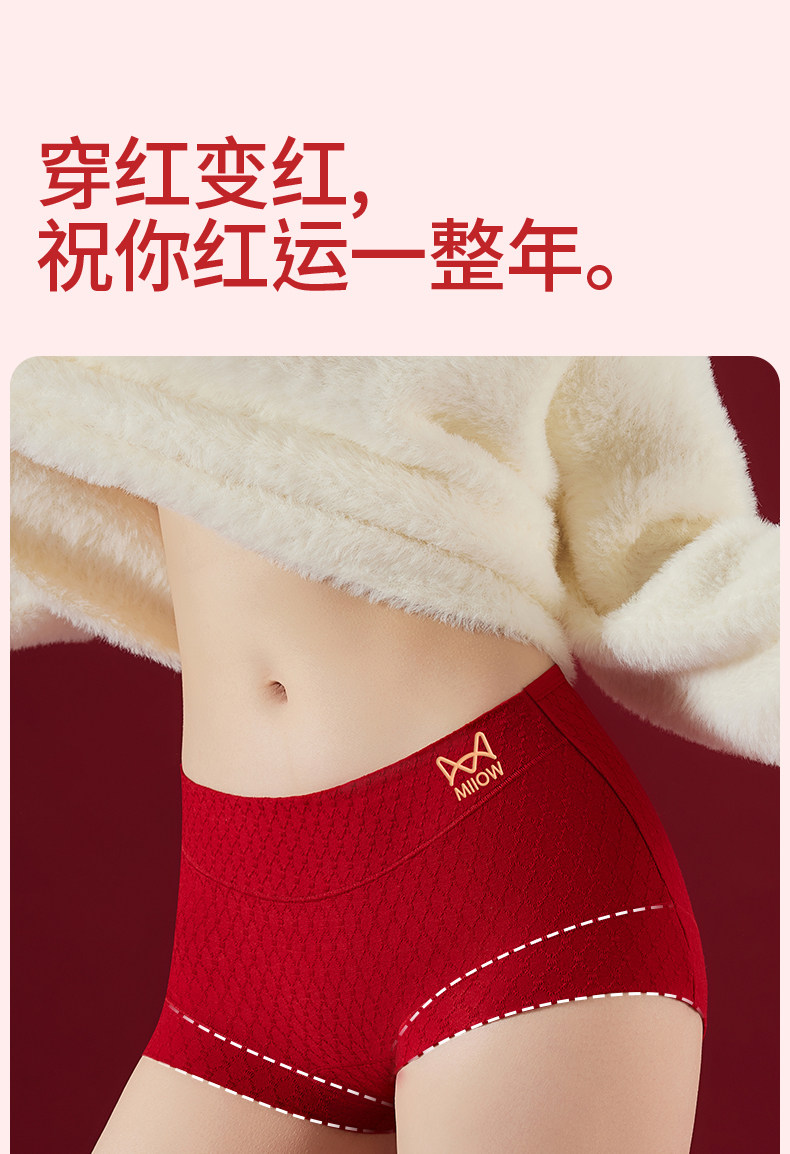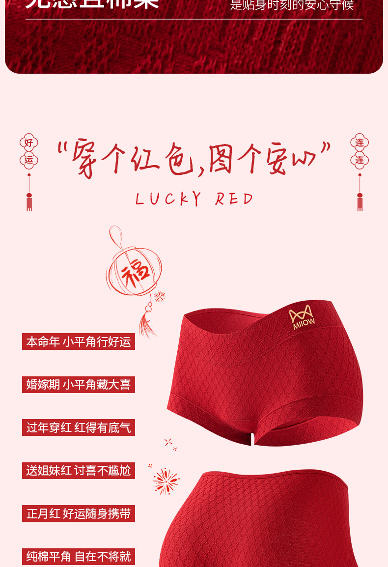 貓人紅色內褲女士純棉抗菌襠中腰無痕本命年平角四角短褲馬年新款