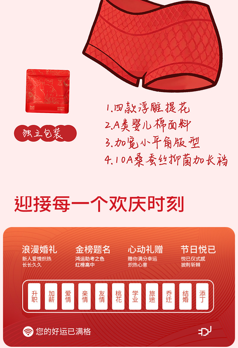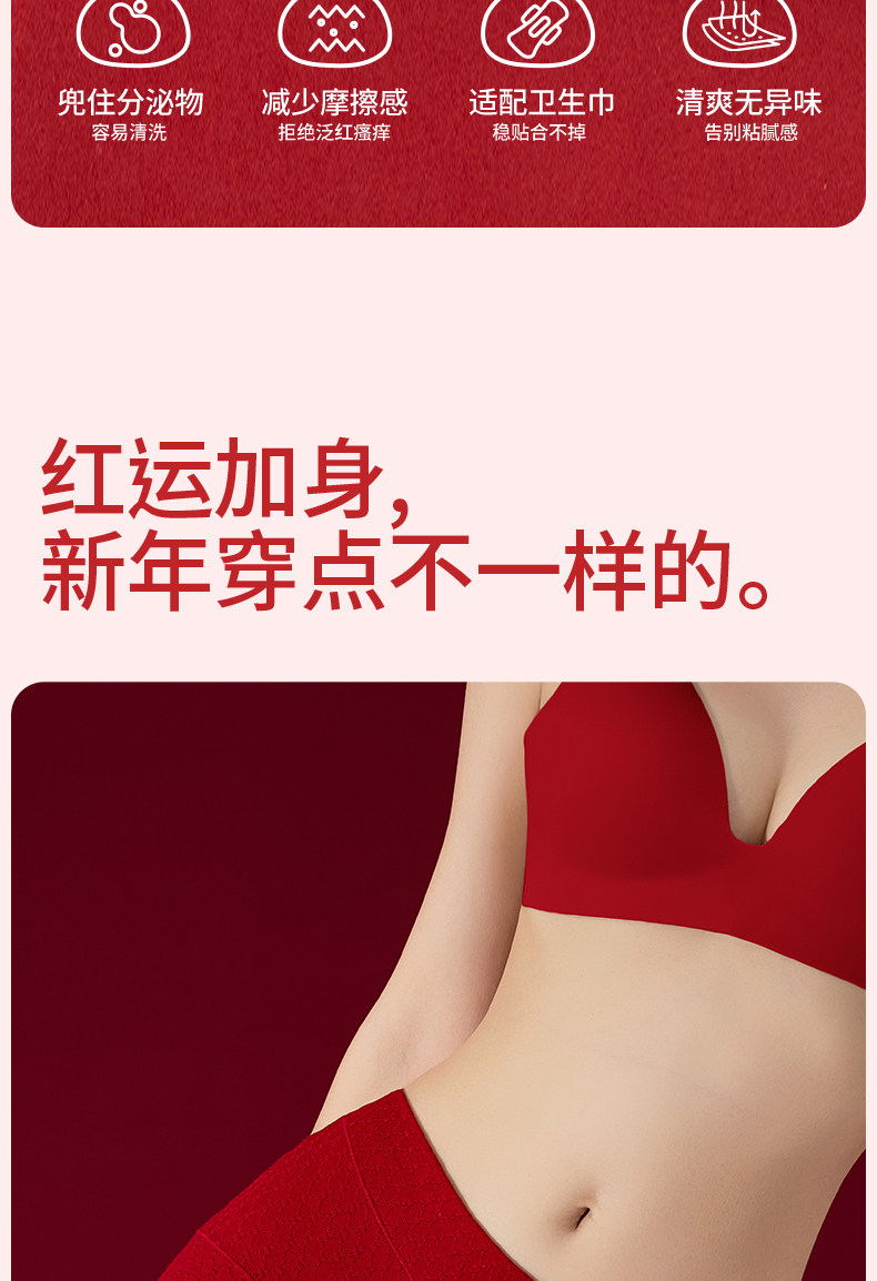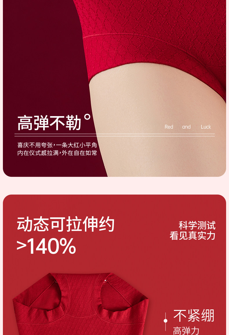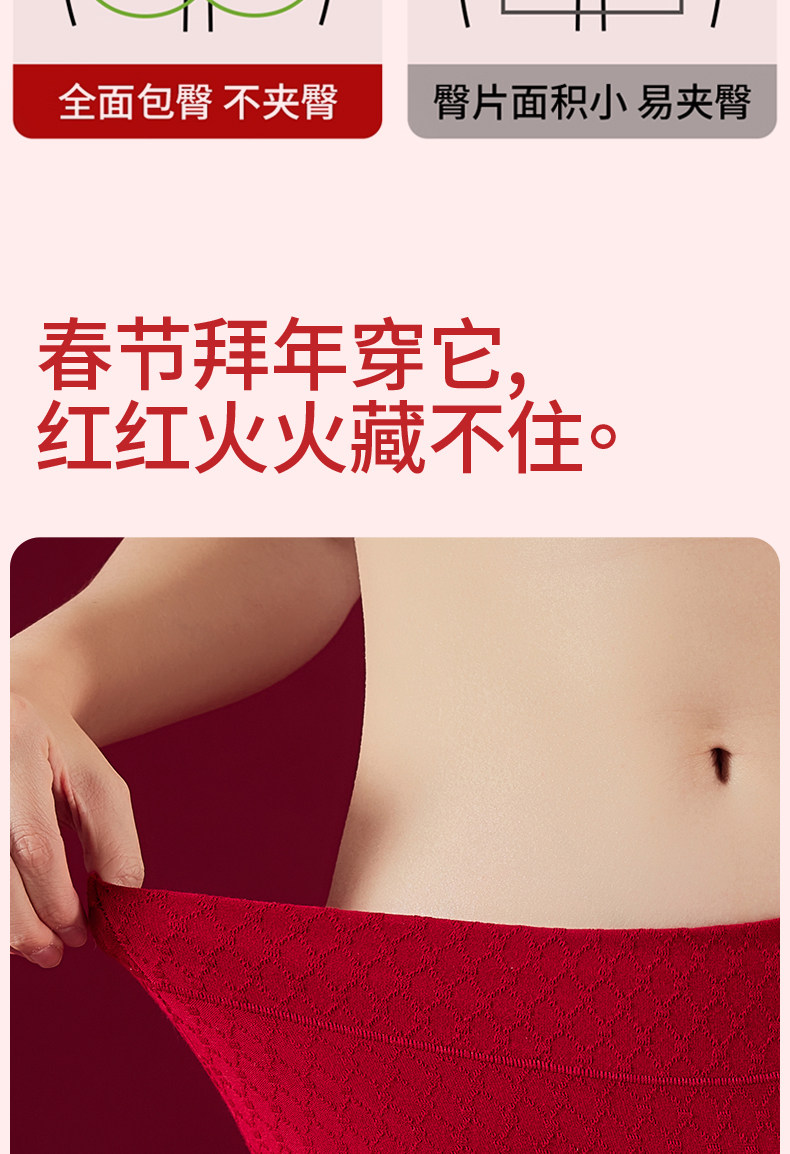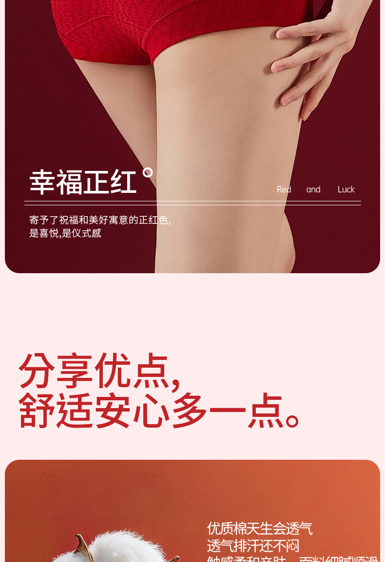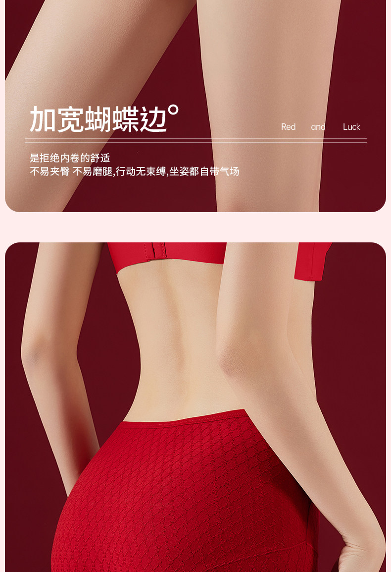 貓人紅色內褲女士純棉抗菌襠中腰無痕本命年平角四角短褲馬年新款
