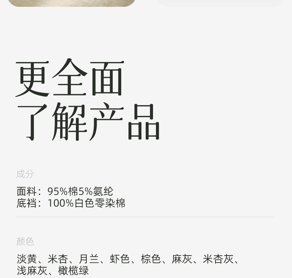 | 大身材質成分 | 棉95% 聚氨酯彈性纖維(氨綸)5% |