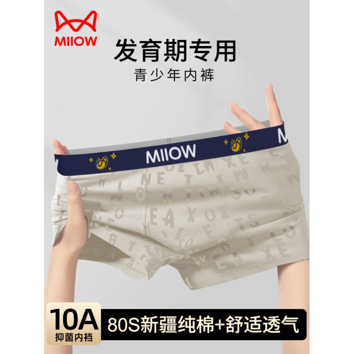 貓人內褲男款青少年發育期學生高中生純棉抗菌透氣男生平角短褲頭