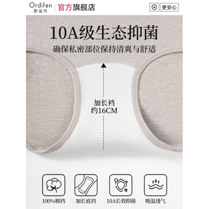 歐迪芬內褲女款純棉抗菌全棉加長襠2026新款高腰收腹女士三角短褲
