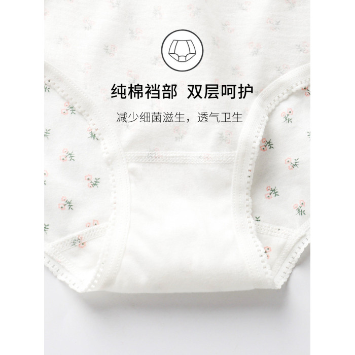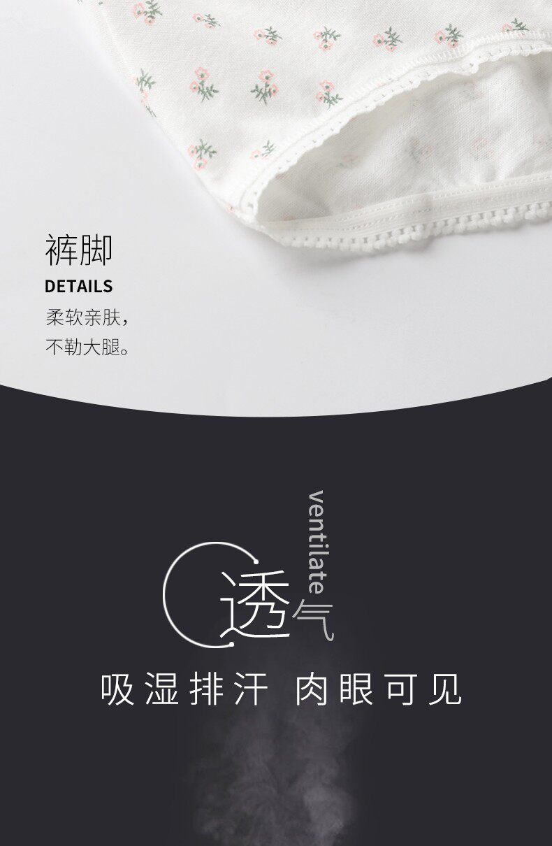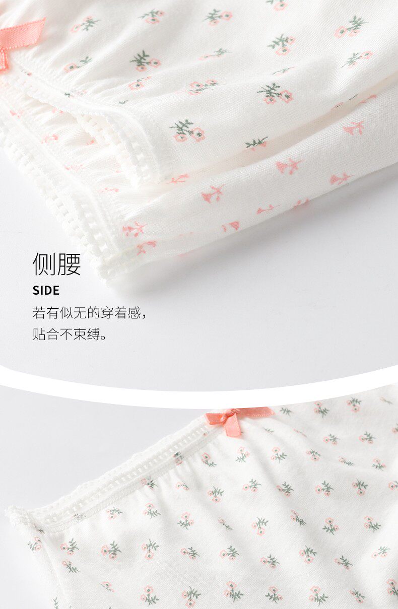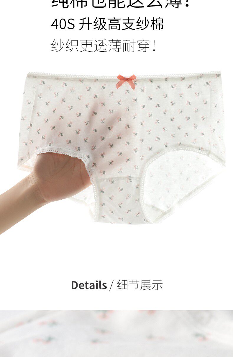 棉文化純棉內褲女100%全棉抗菌少女可愛薄中腰平角四角褲透氣包臀