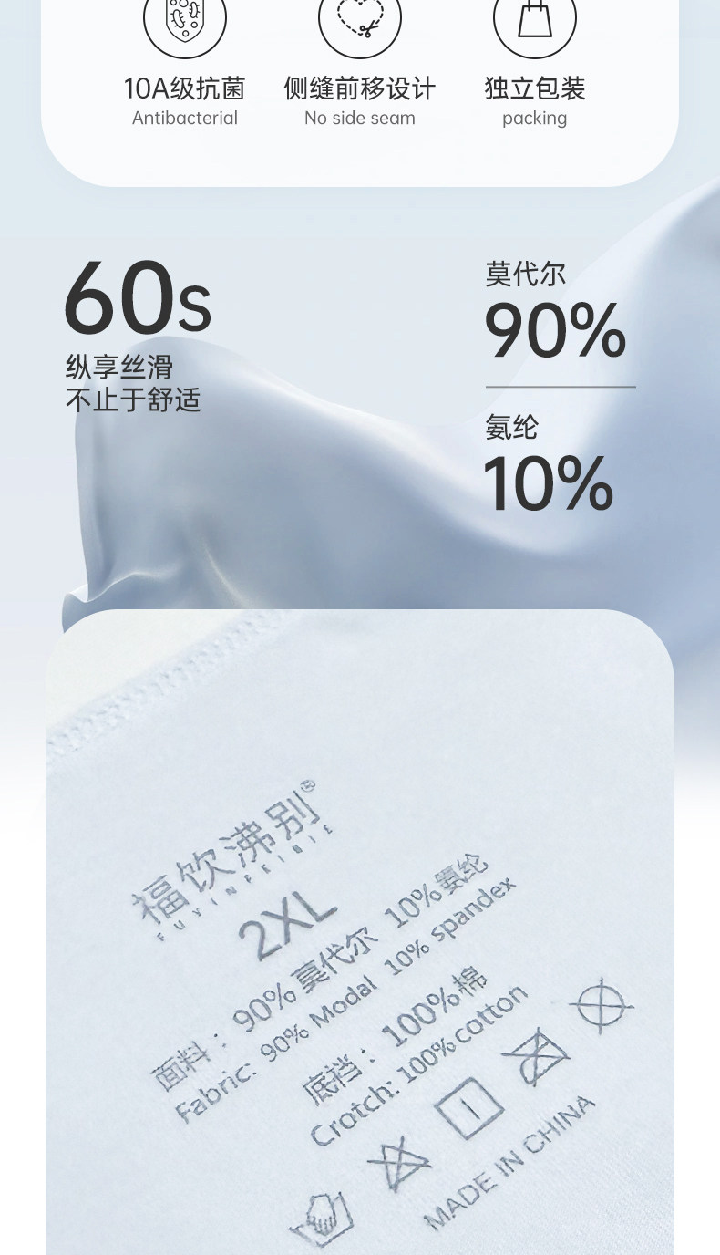 | 大身材質成分 | 莫代爾纖維(莫代爾)90% 聚氨酯彈性纖維(氨綸)10% |