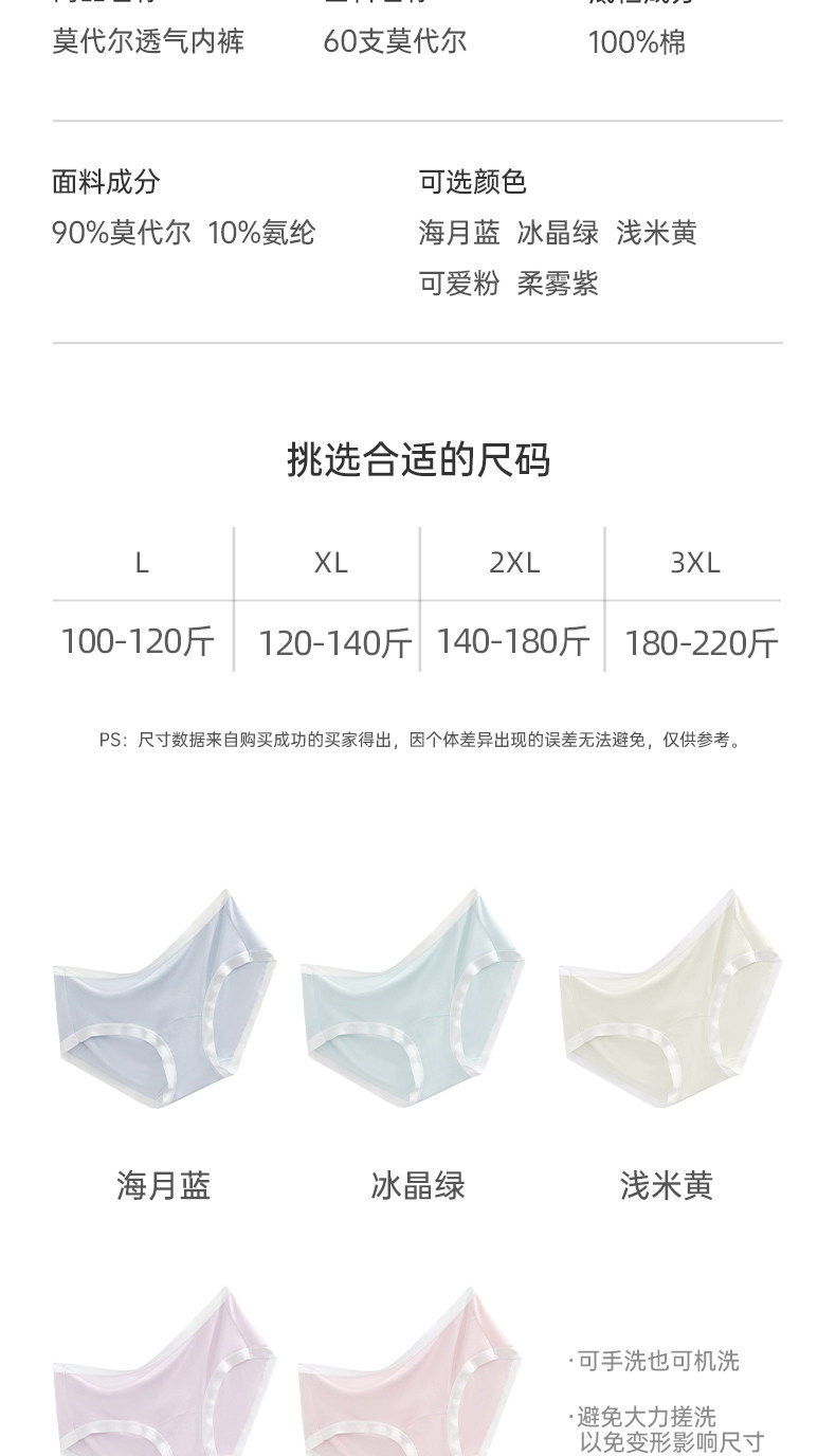 福飲沸別【雲感貼身】大碼胖mm舒適抗菌無痕莫代爾內褲-BQF25011
