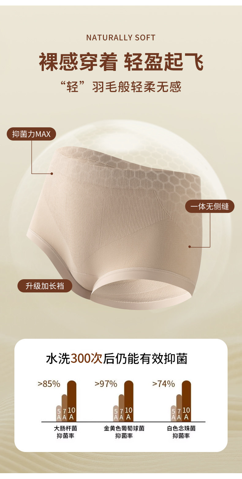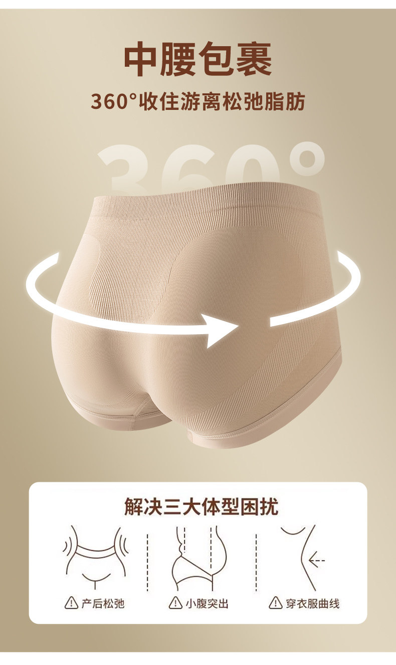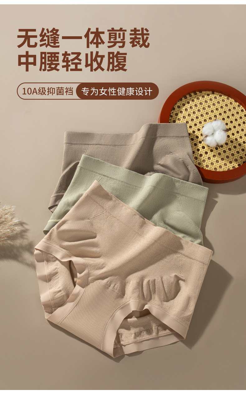 雅鹿收腹內褲女士新款10A抑菌純棉襠中腰無痕不夾臀女生三角短褲