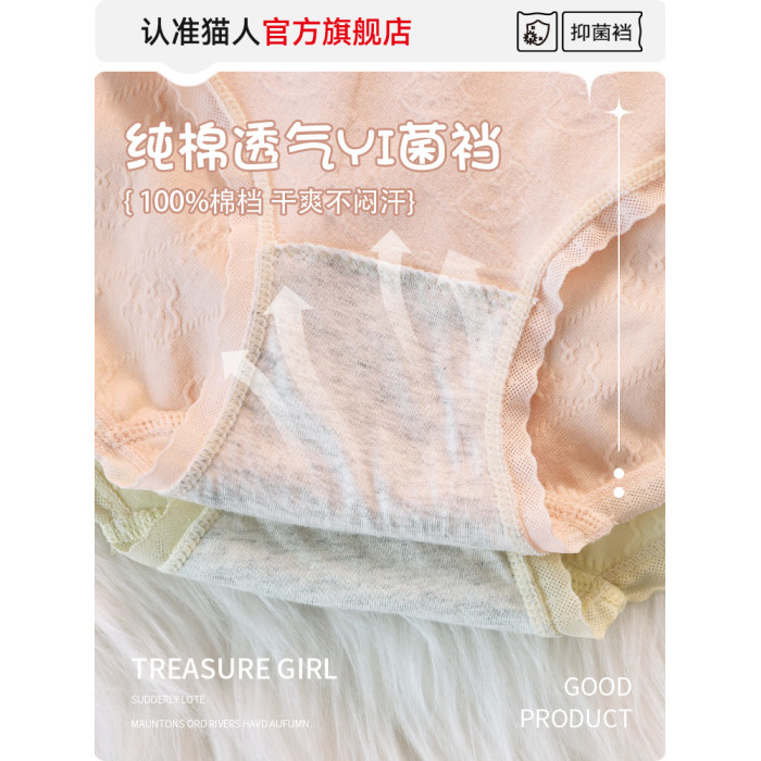 貓人女士內褲純棉抑菌襠2025新款女生夏季薄款大碼中腰無痕三角褲