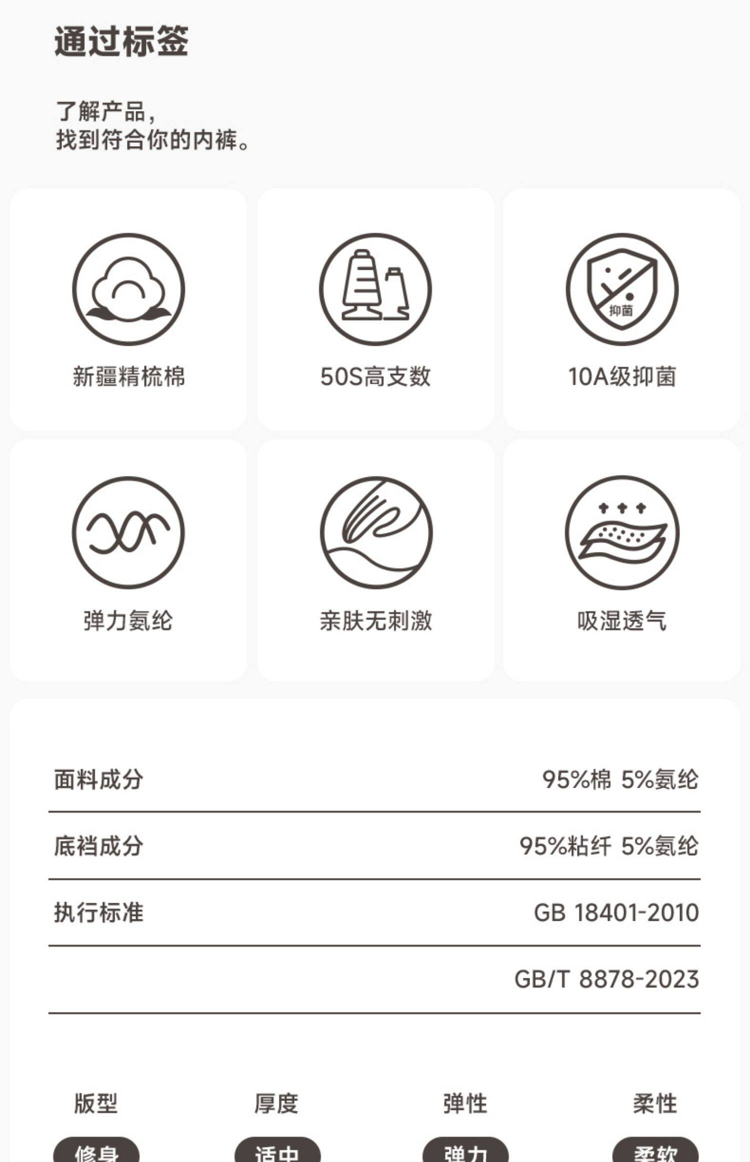 | 襠部材質成分 | 粘膠纖維(粘纖)95% 聚氨酯彈性纖維(氨綸)5% |