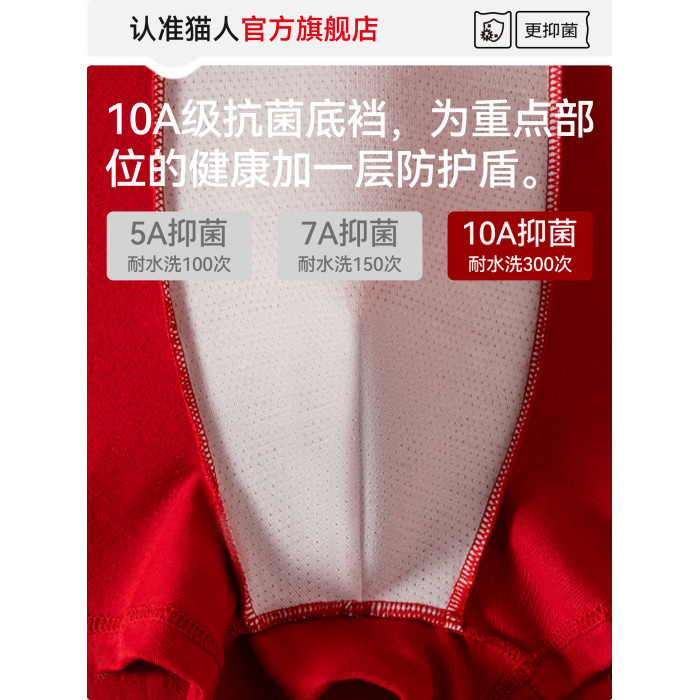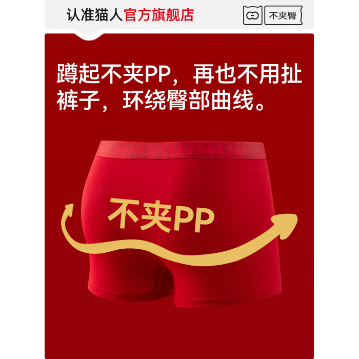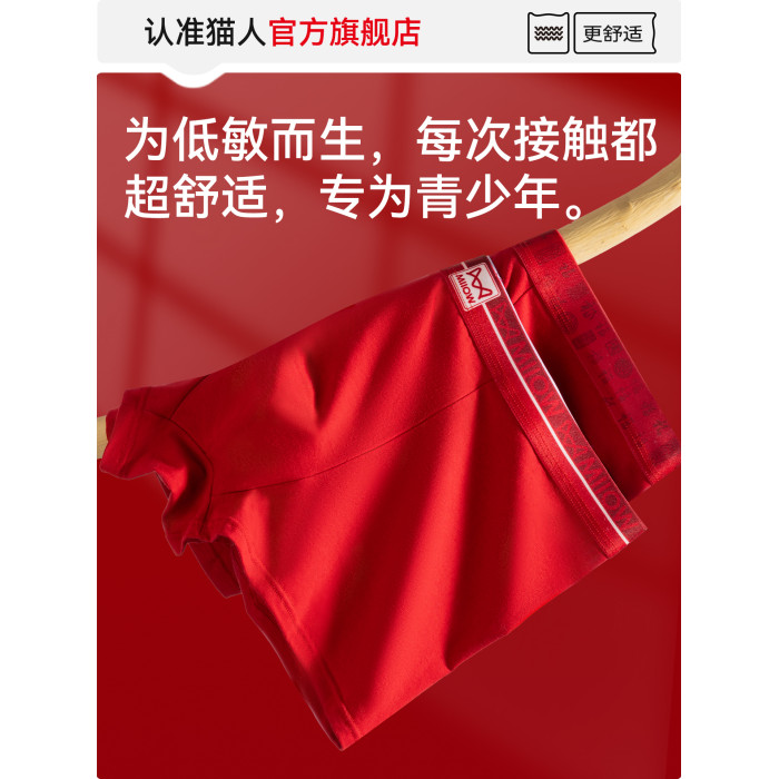 貓人青少年內褲男生發育期本命年紅色純棉初高中生胖大童平角褲頭