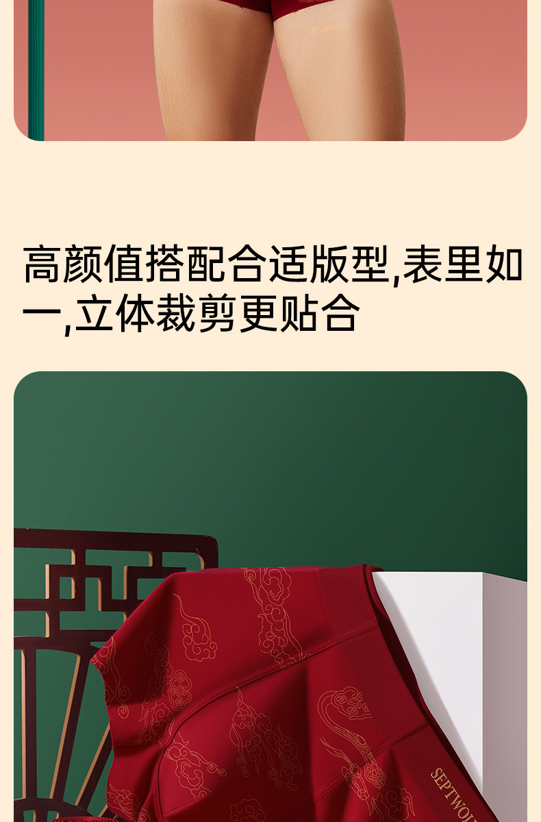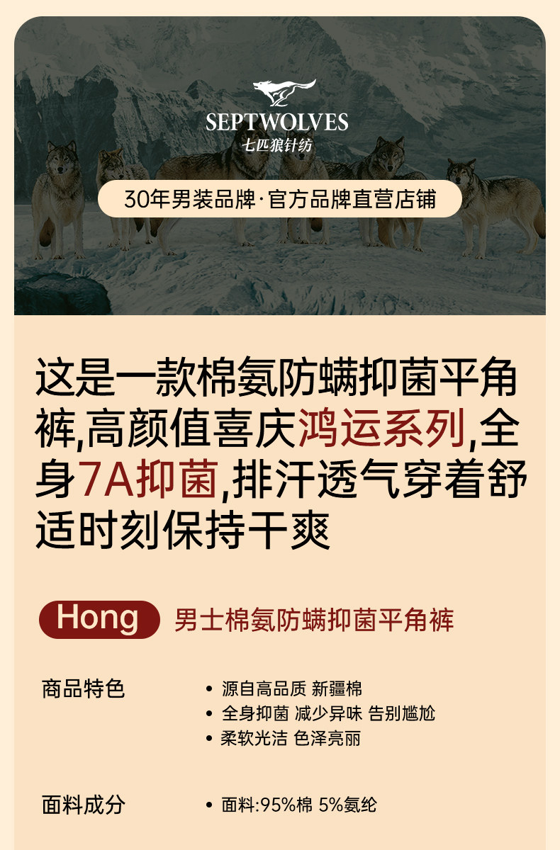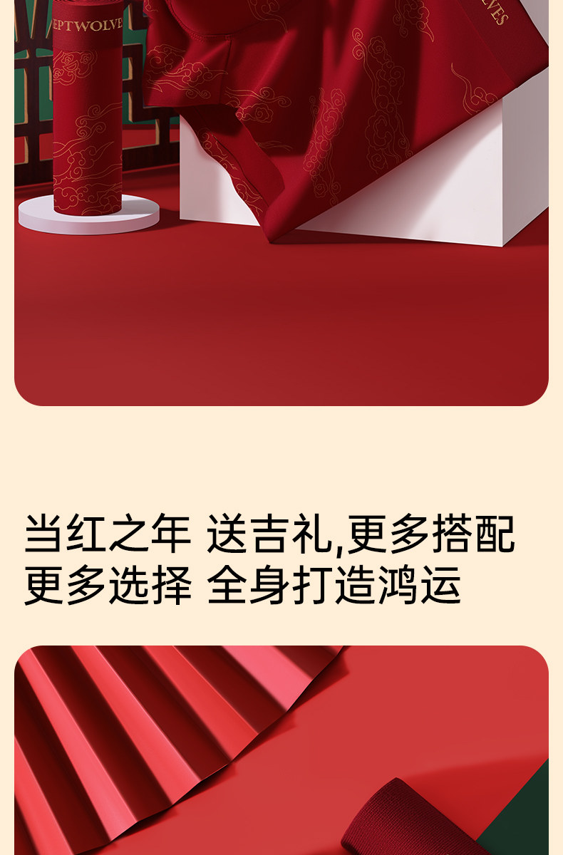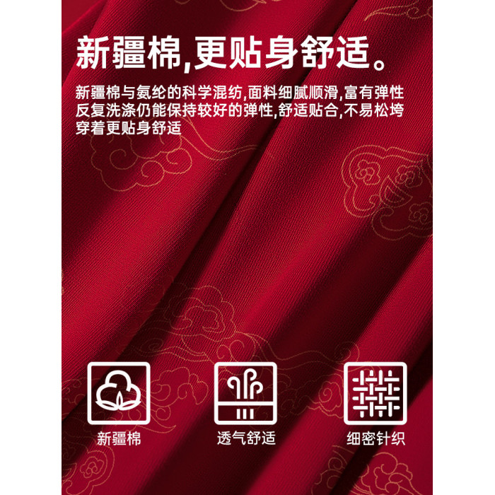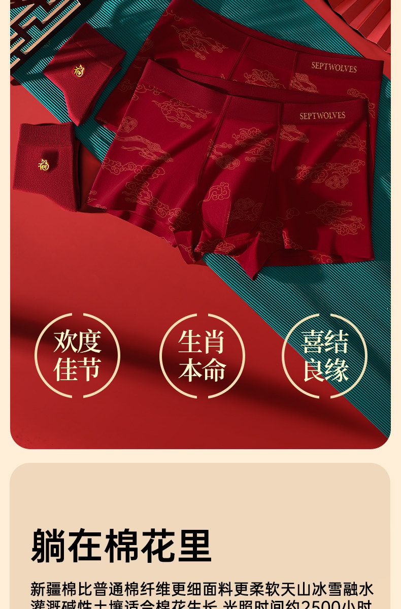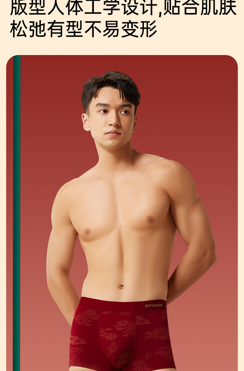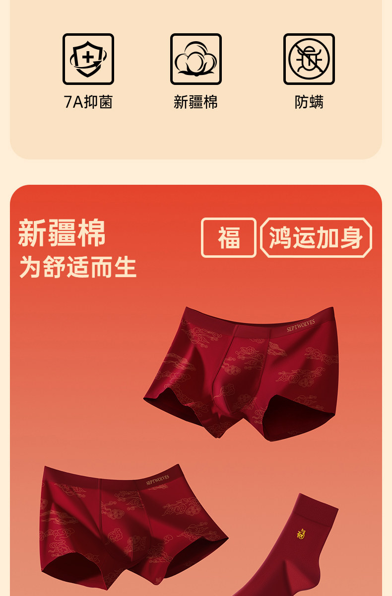 七匹狼男士內褲本命年男生平角褲純棉紅色底褲馬年四角短褲頭男款