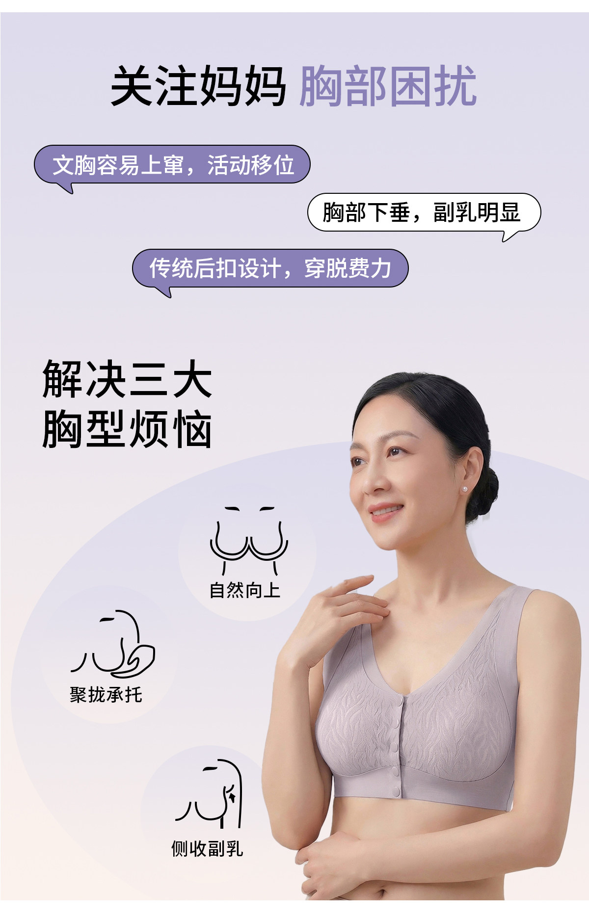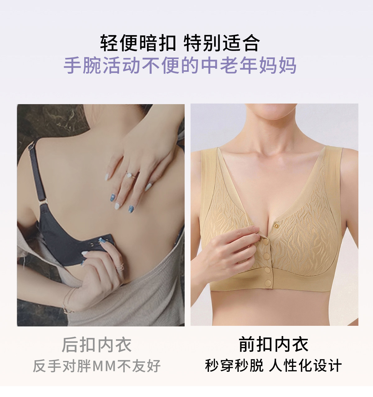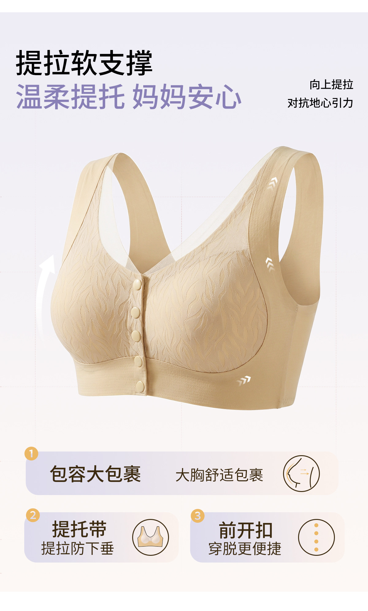 貓人媽媽內衣文胸中老年專用適型防下垂無鋼圈前開釦大碼無痕胸罩