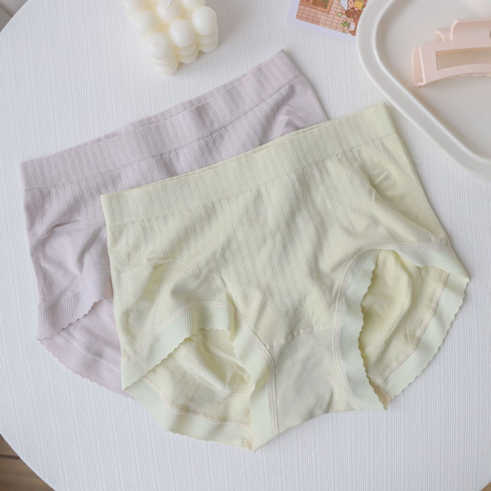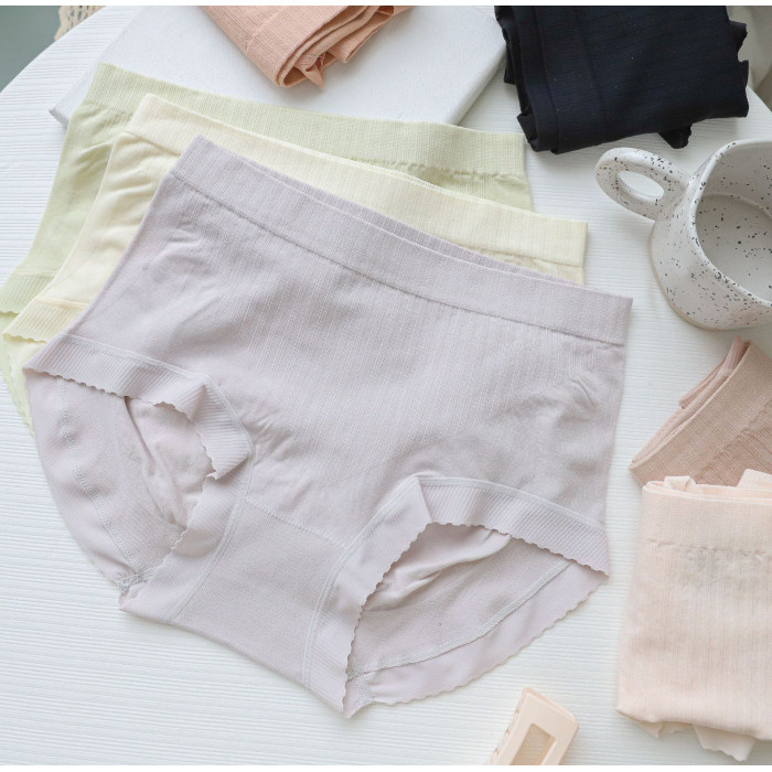 60支莫代爾大版收腹無縫內褲女士透氣中腰無痕少女三角褲馬卡龍色