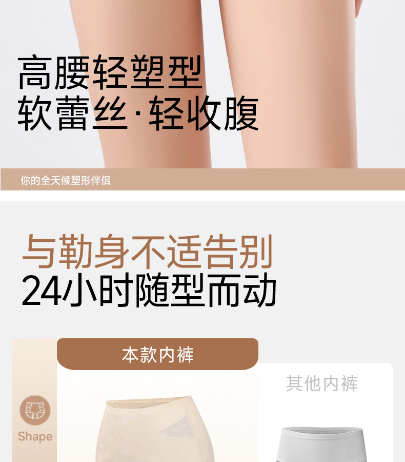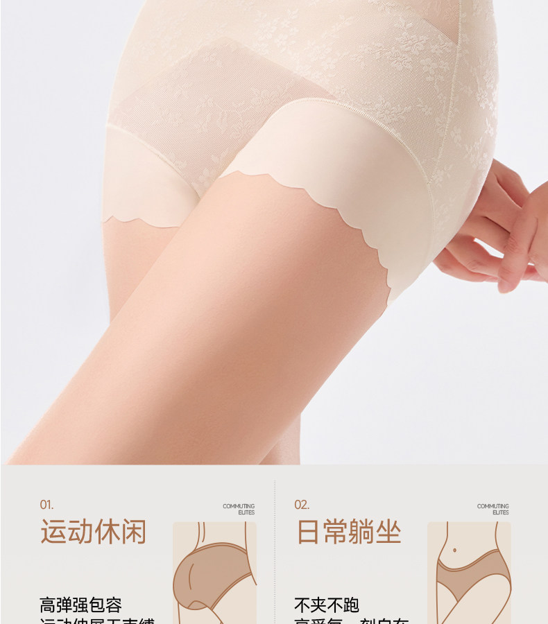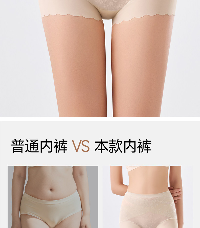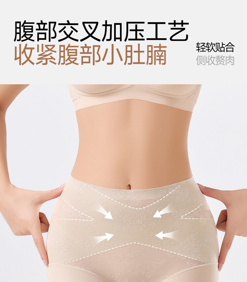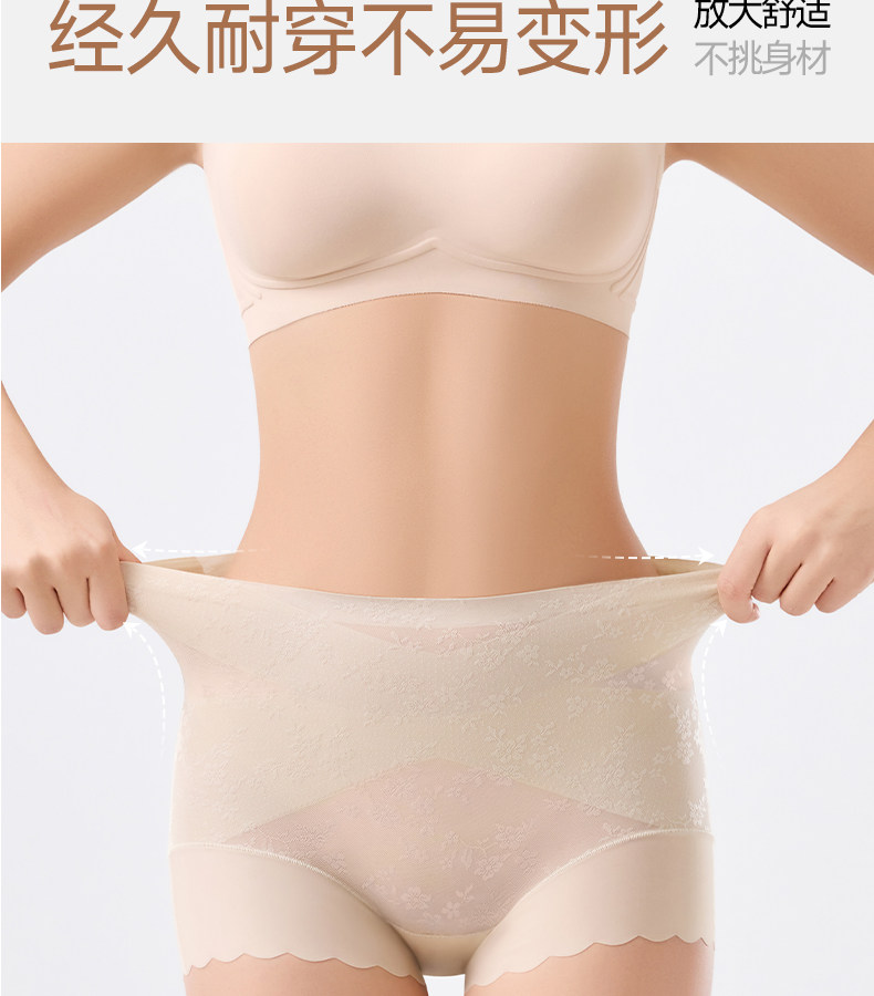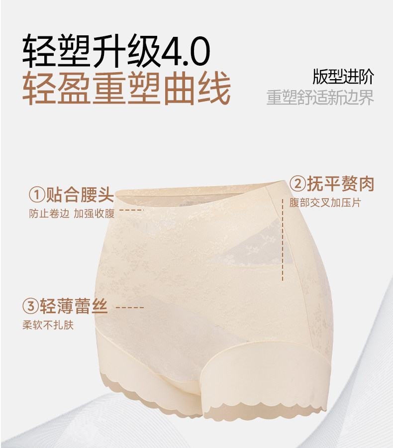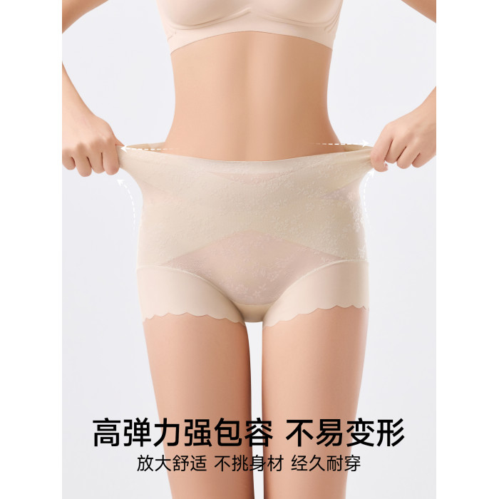 婷美高腰蕾絲內褲女士2026新款無痕收腹塑形美體收小肚子平角短褲