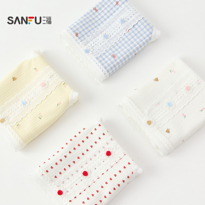 三福女低腰不夾臀內褲 BM風前幅花仔滿印圖案半平角褲504296