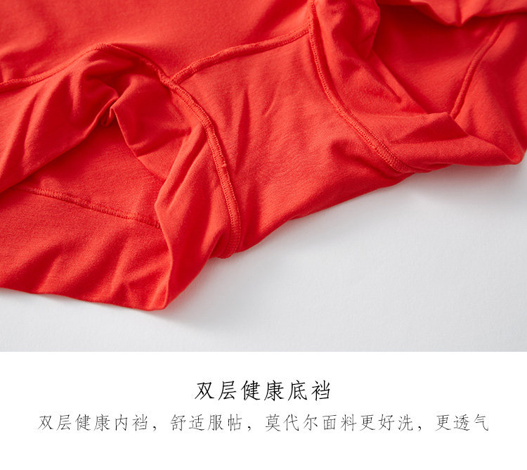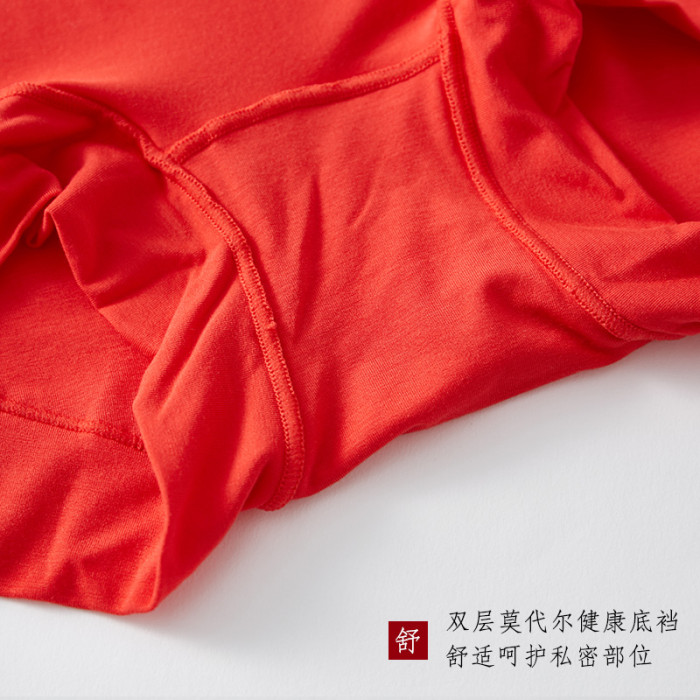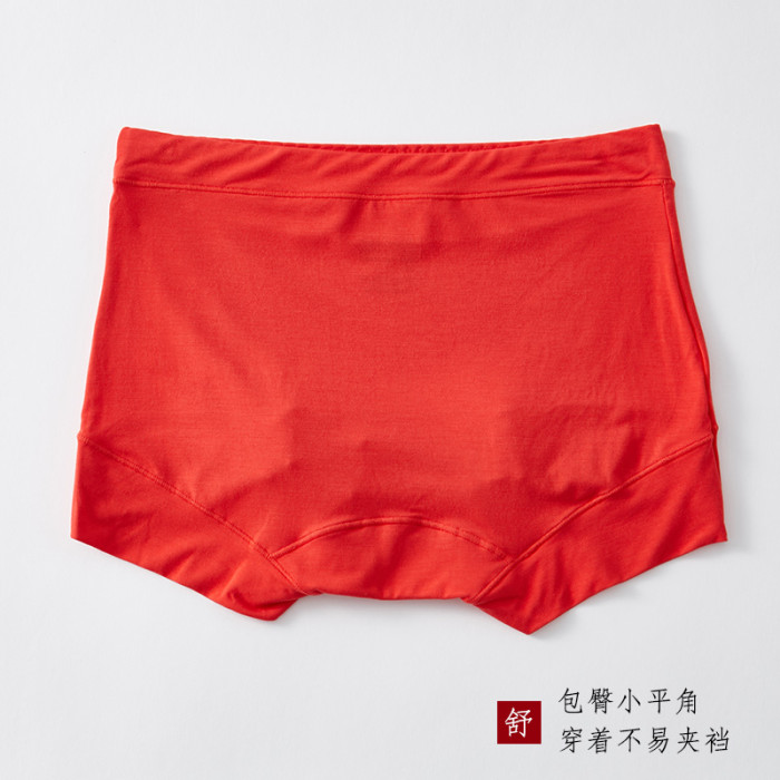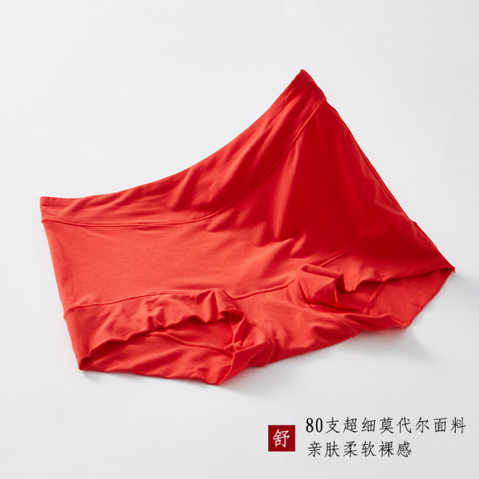 本命年紅色內褲女莫代爾無痕中高腰平角褲頭舒適女士結婚禮物馬年
