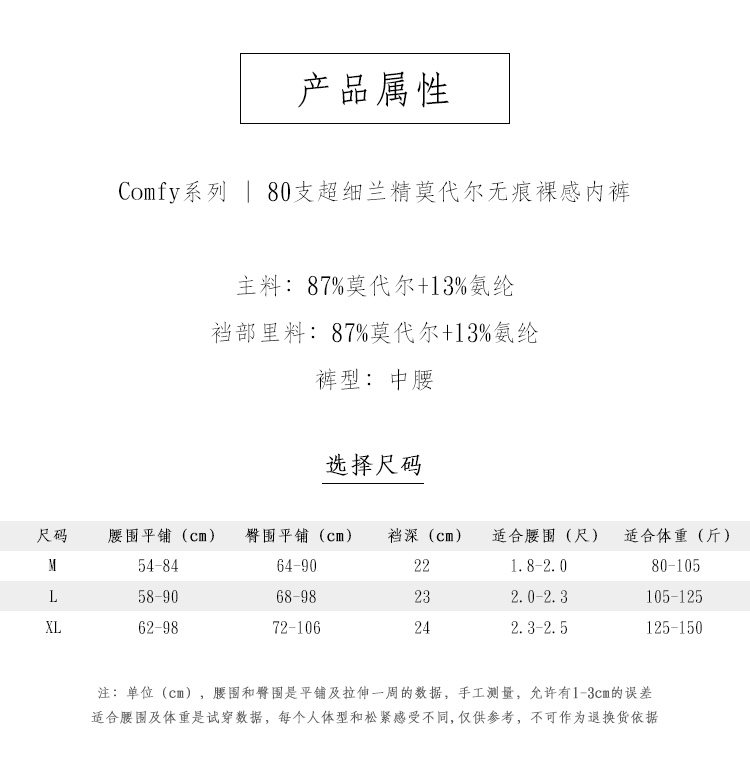 | 襠部材質成分 | 莫代爾纖維(莫代爾)88% 聚氨酯彈性纖維(氨綸)12% |