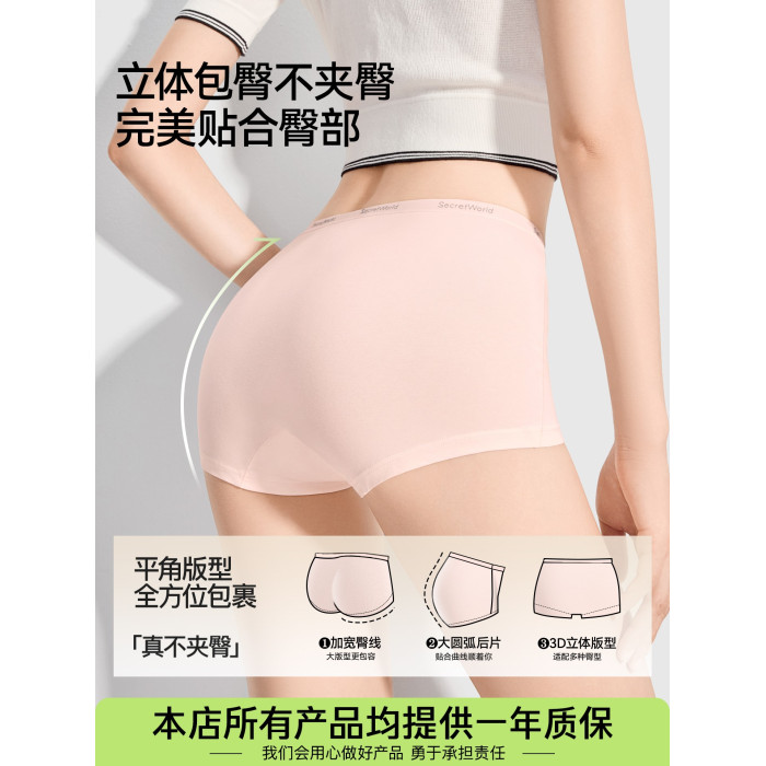SW平角內褲女士純棉加長襠2026年新款抗菌無痕女款大碼四角短褲