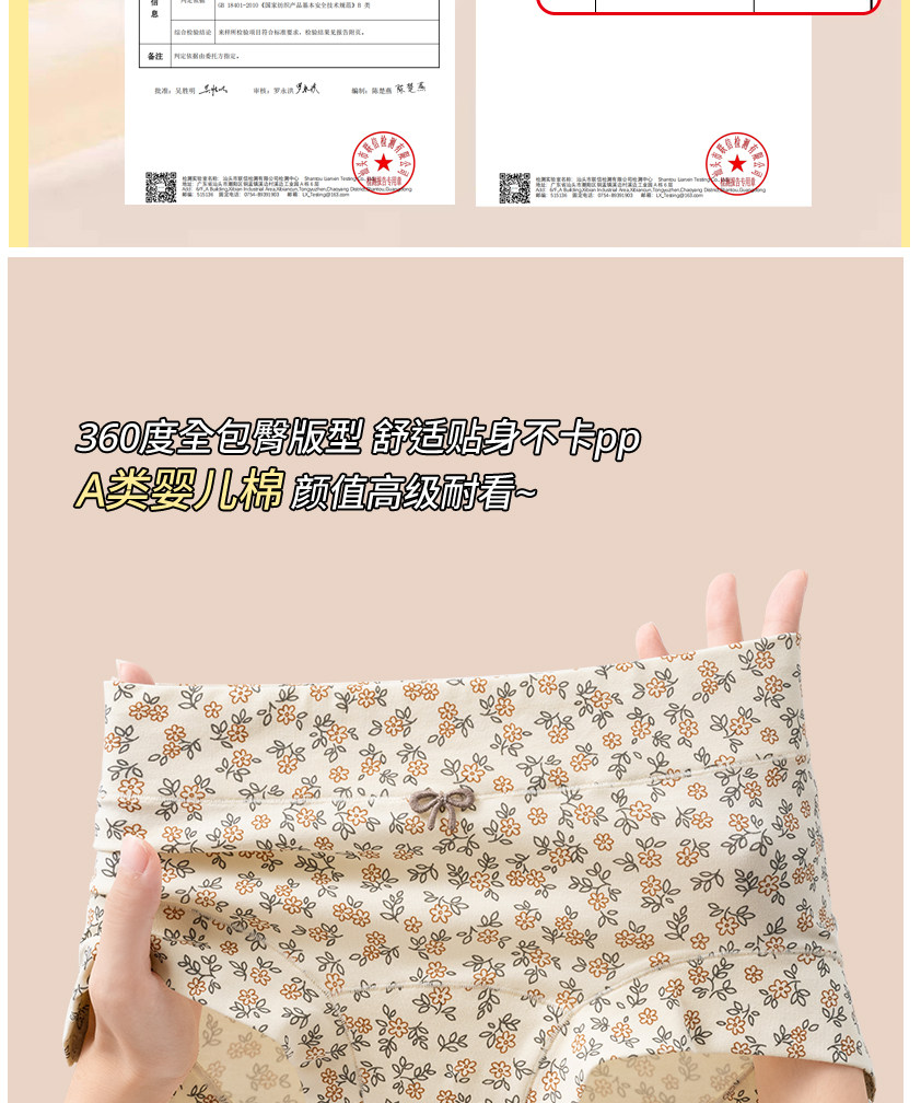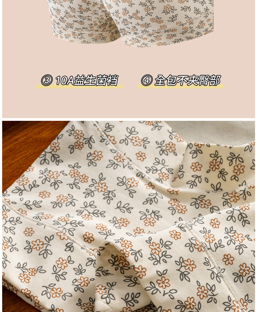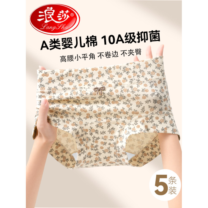浪莎平角內褲女士A類純棉7a級抗菌2025新款100%全棉高腰四角短褲