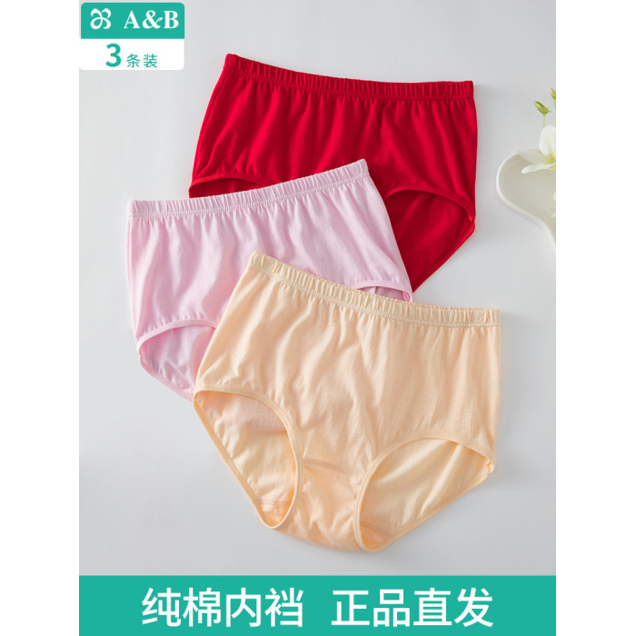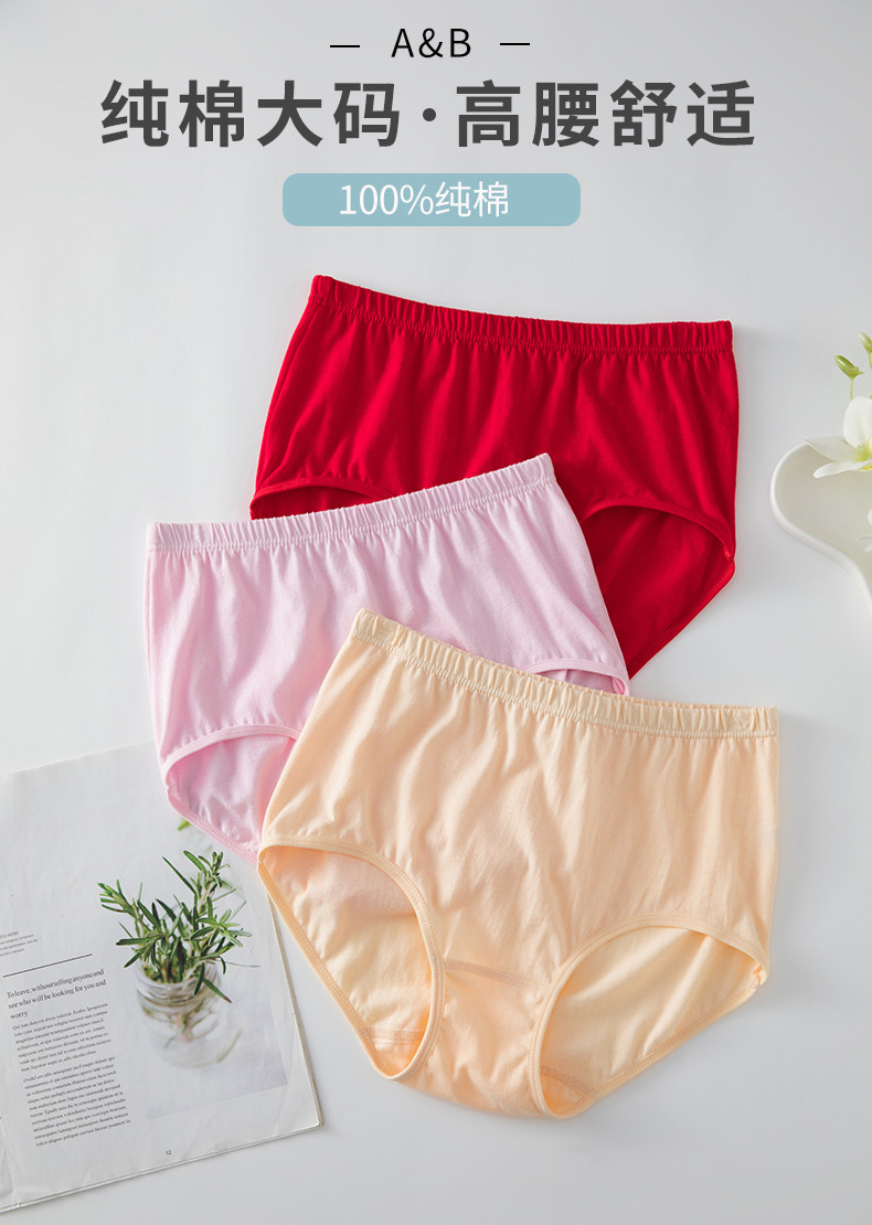 ab內褲女100%純棉高腰寬鬆大碼短褲中老年媽媽平角褲全棉透氣L612