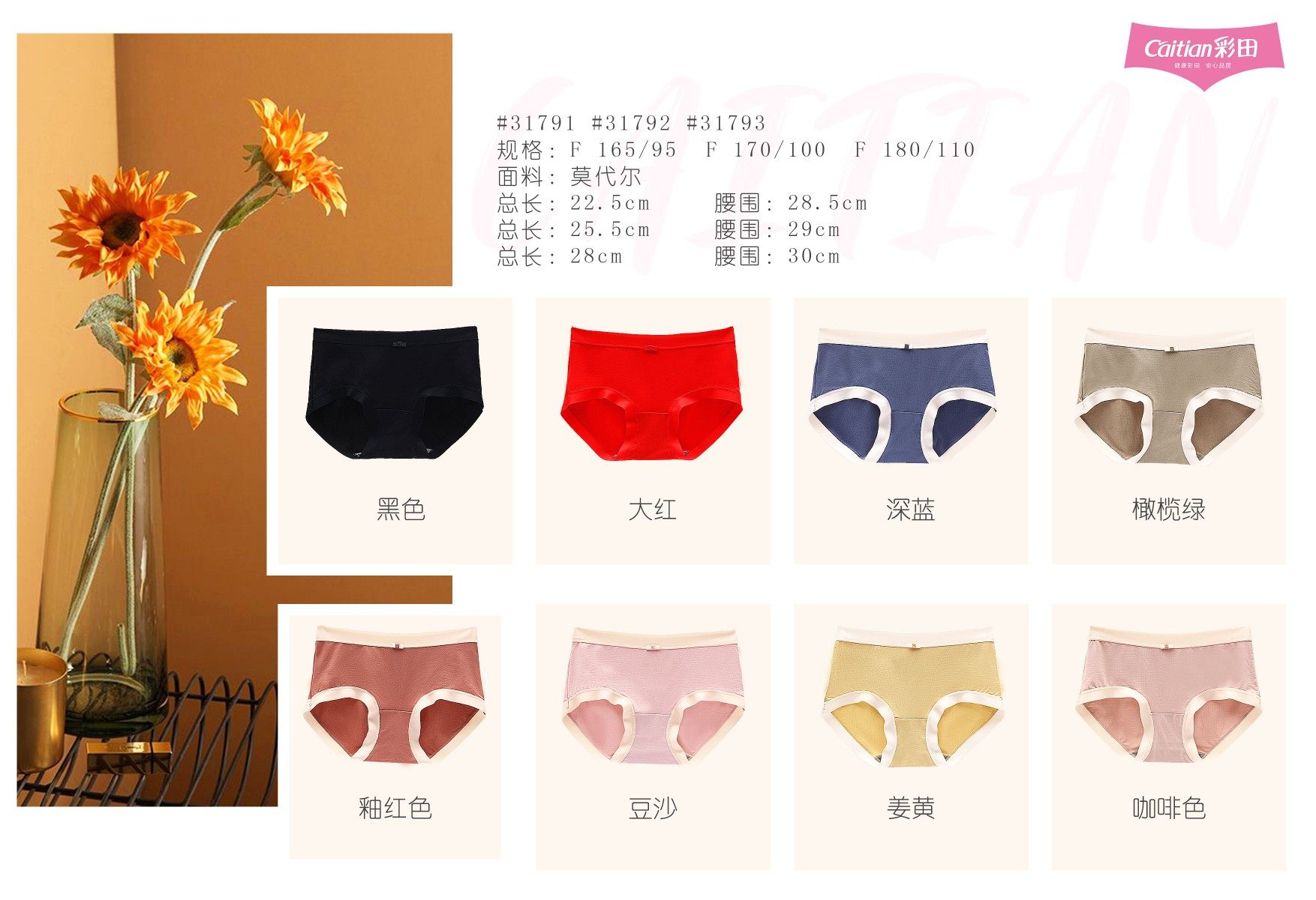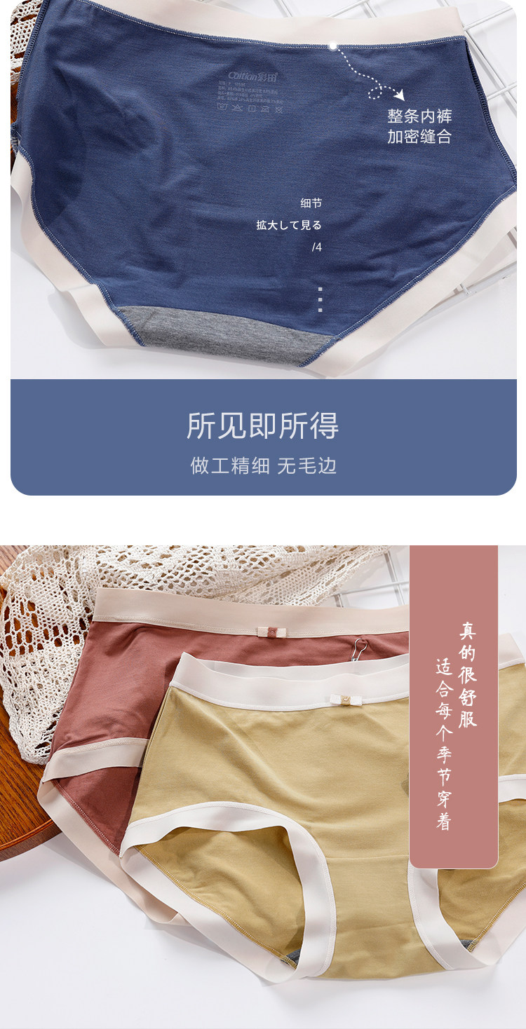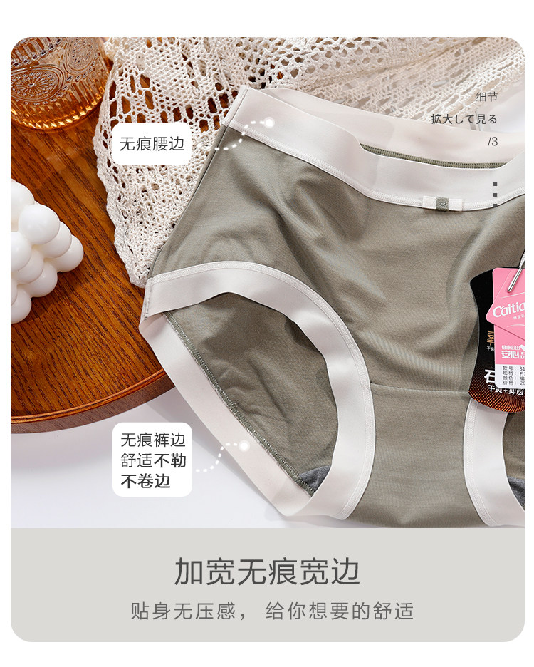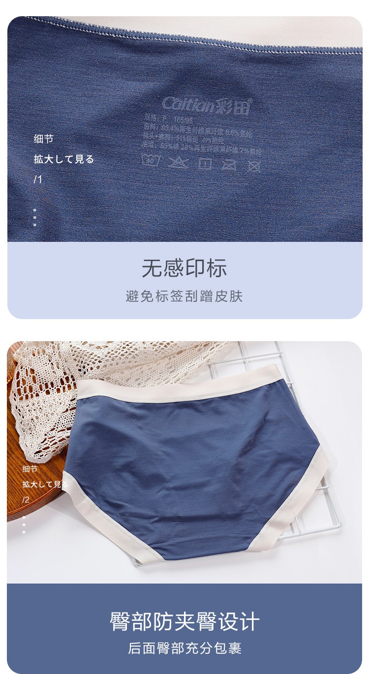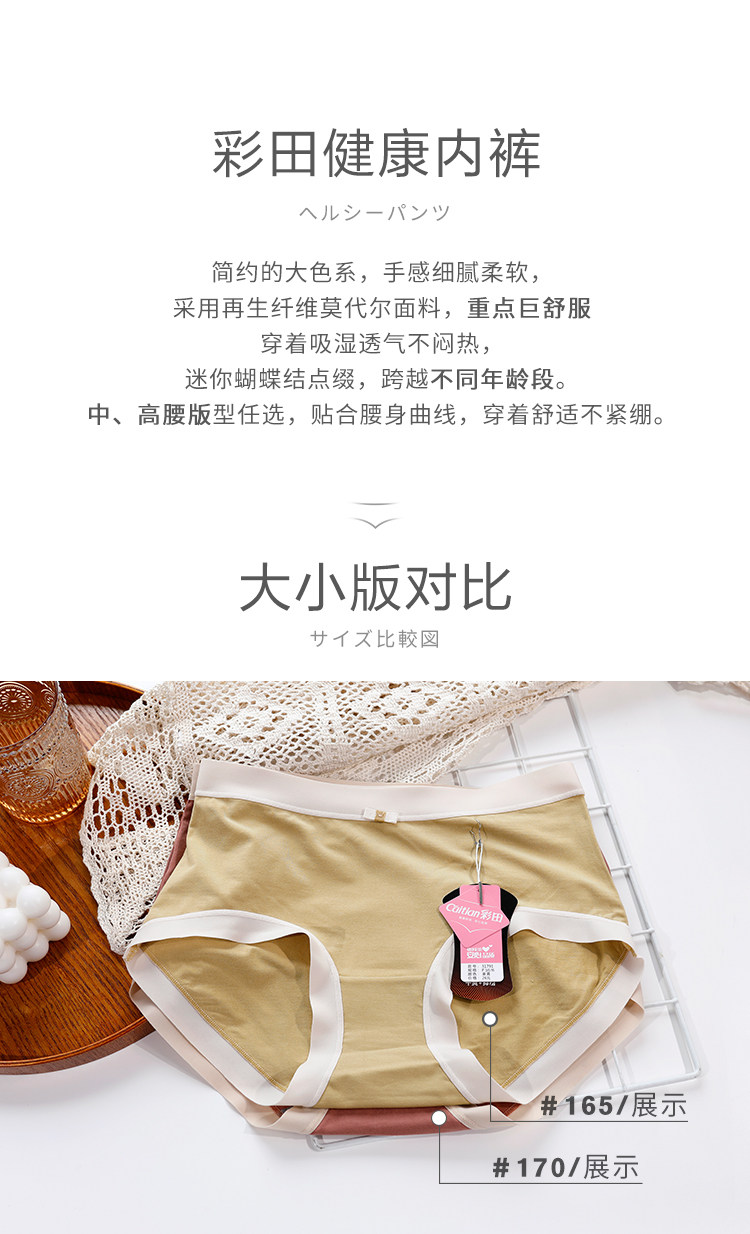 彩田柔滑莫代爾無痕邊石墨烯襠包臀女內褲31791中腰31792高腰大碼