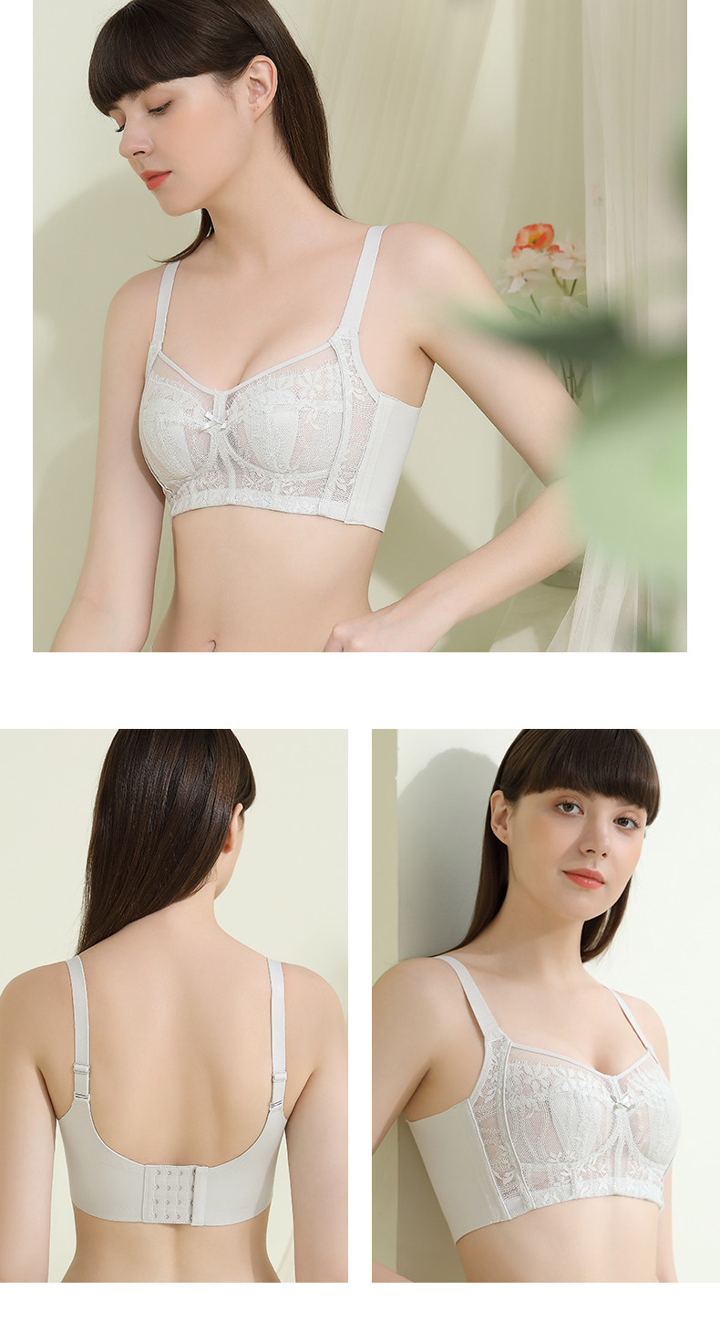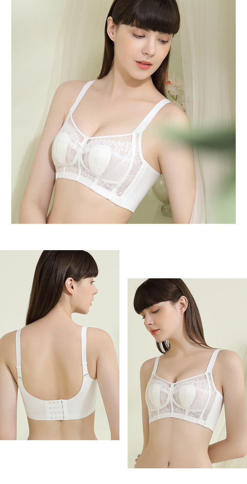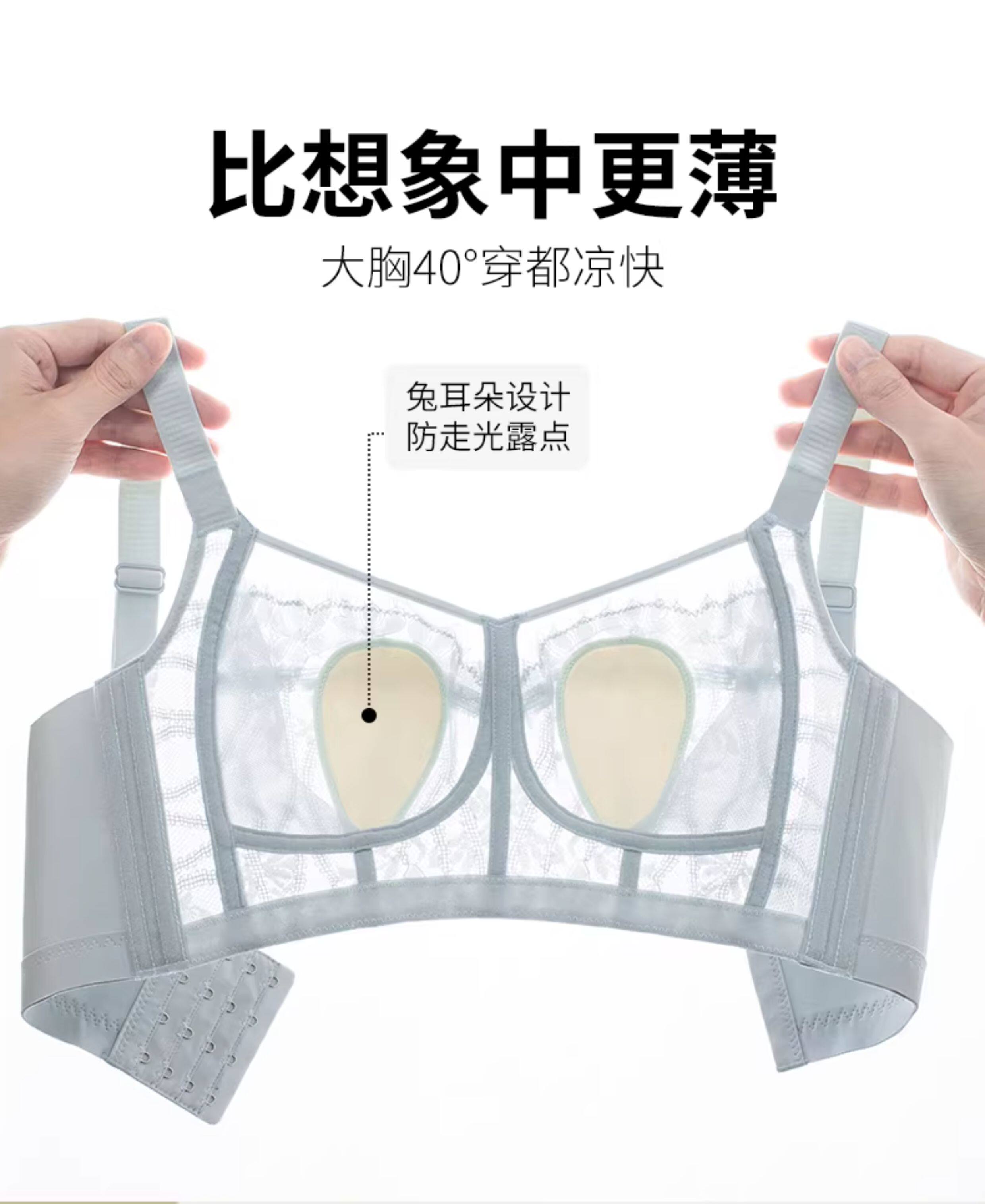 舒適果超薄內衣女大胸顯小無鋼圈調整型側收副乳全罩杯兔耳杯文胸