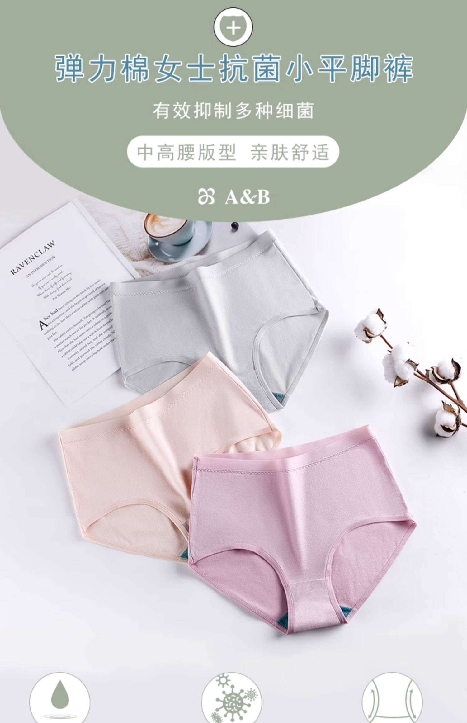 ab內褲【3條裝】純色內衣棉平腳中高腰抗菌女短褲旗艦店官網1108