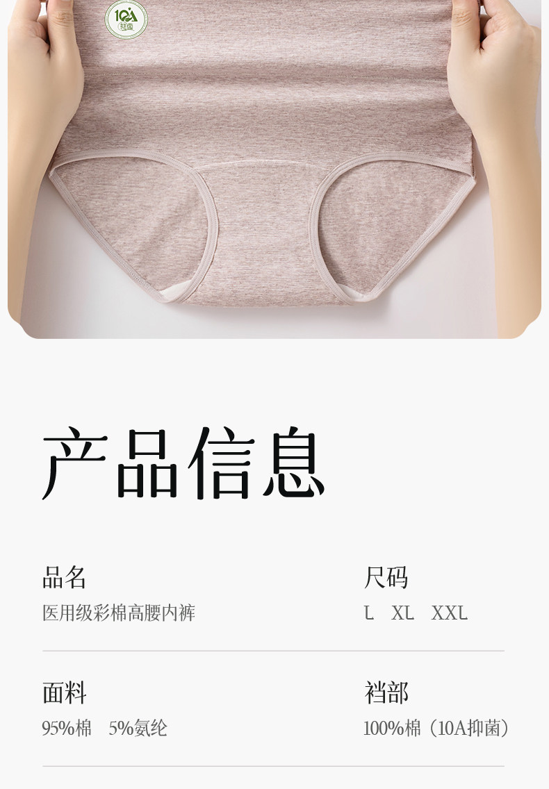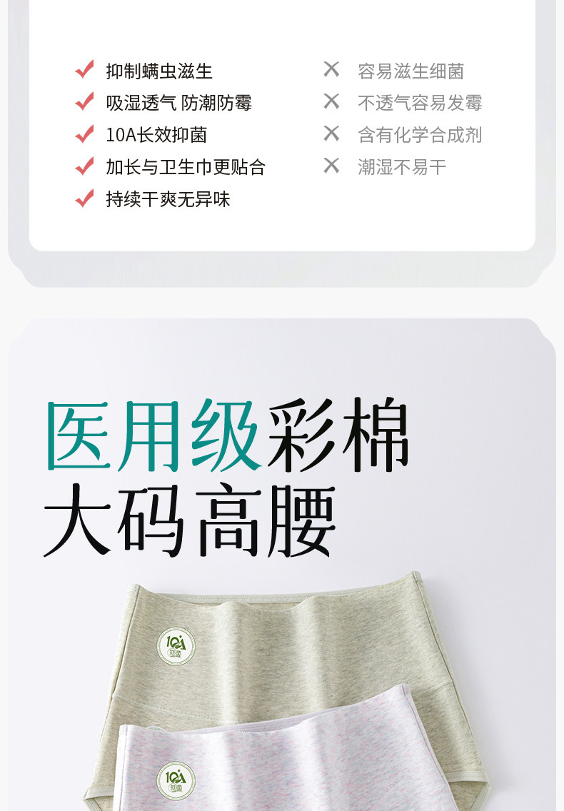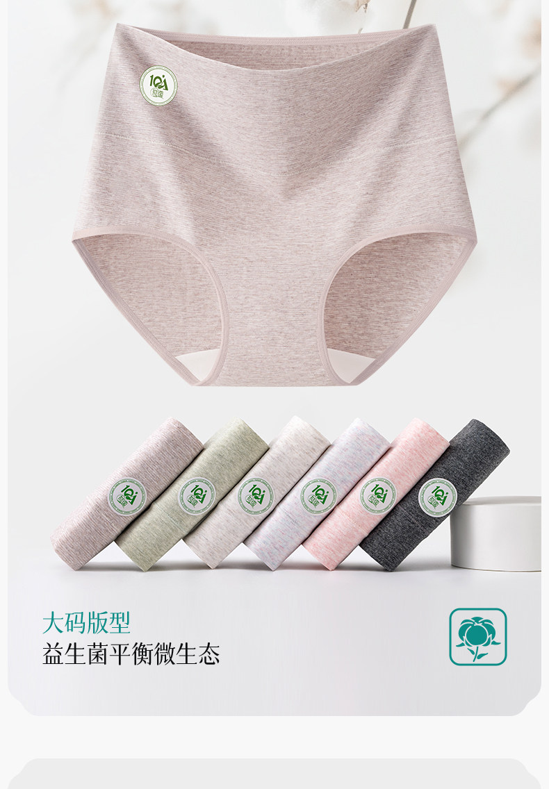 蝶安芬純棉內褲女士10A抑菌加長襠高腰收腹平角透氣大碼三角短褲