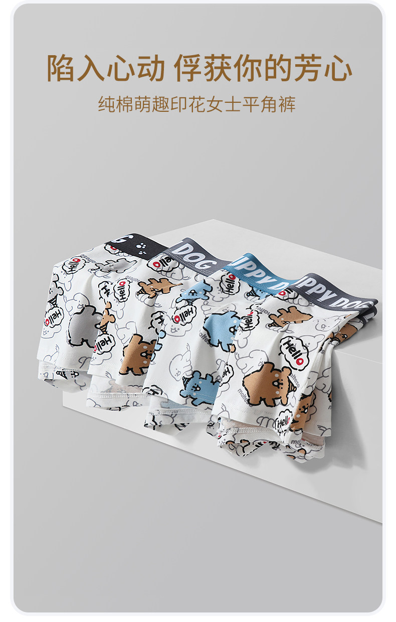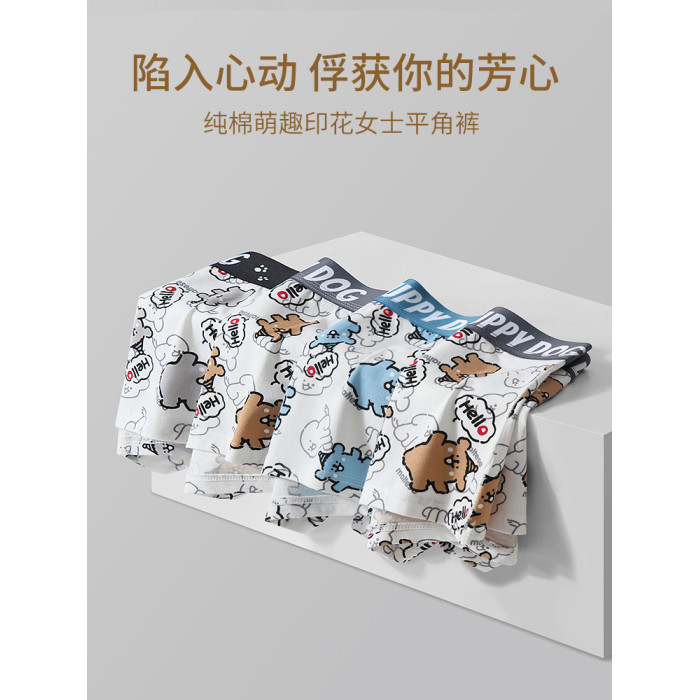 女生內褲純棉抗菌透氣平角可愛卡通印花女款中腰舒適運動四角褲