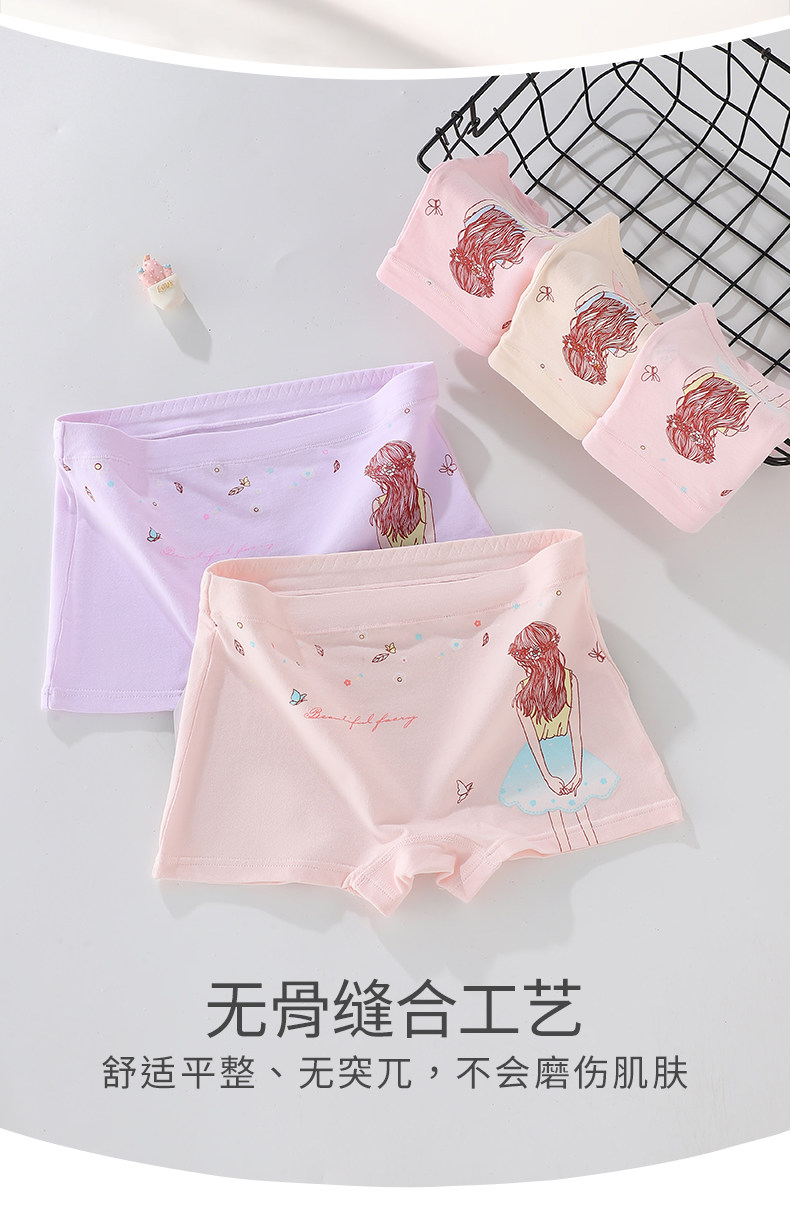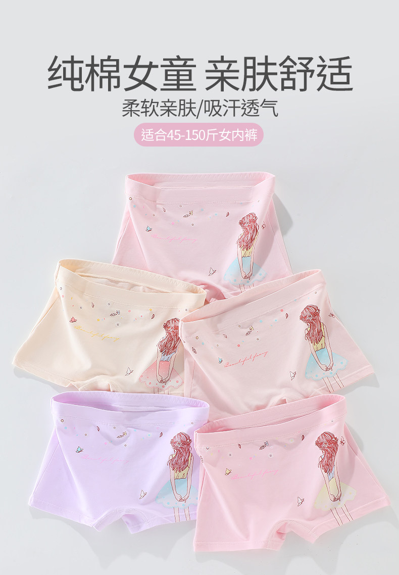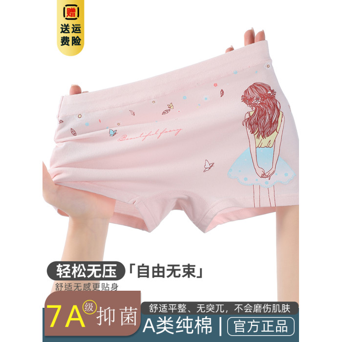 初中生內褲女平角大童12周嵗以上純棉a類兒童青少年學生四角短褲