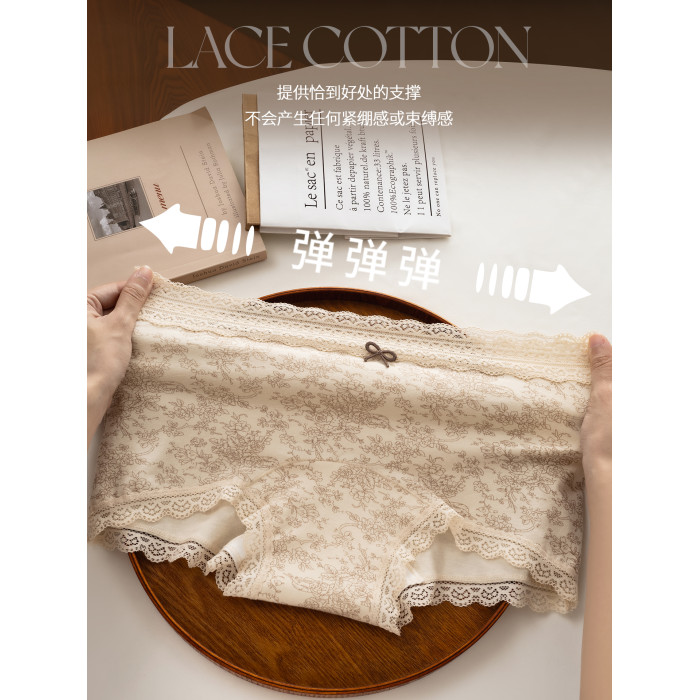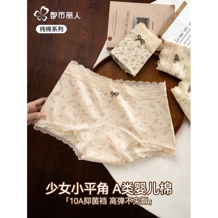 都市麗人平角內褲女士純棉抗菌全棉襠2025新款中腰蕾絲女生四角褲