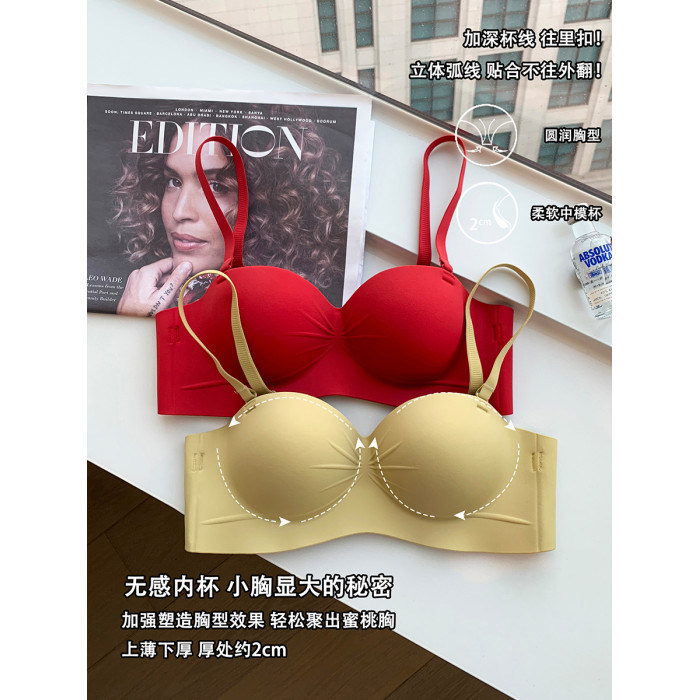 日本無痕內衣女小胸聚攏顯大收副乳防下垂無鋼圈軟支撐上托文胸罩