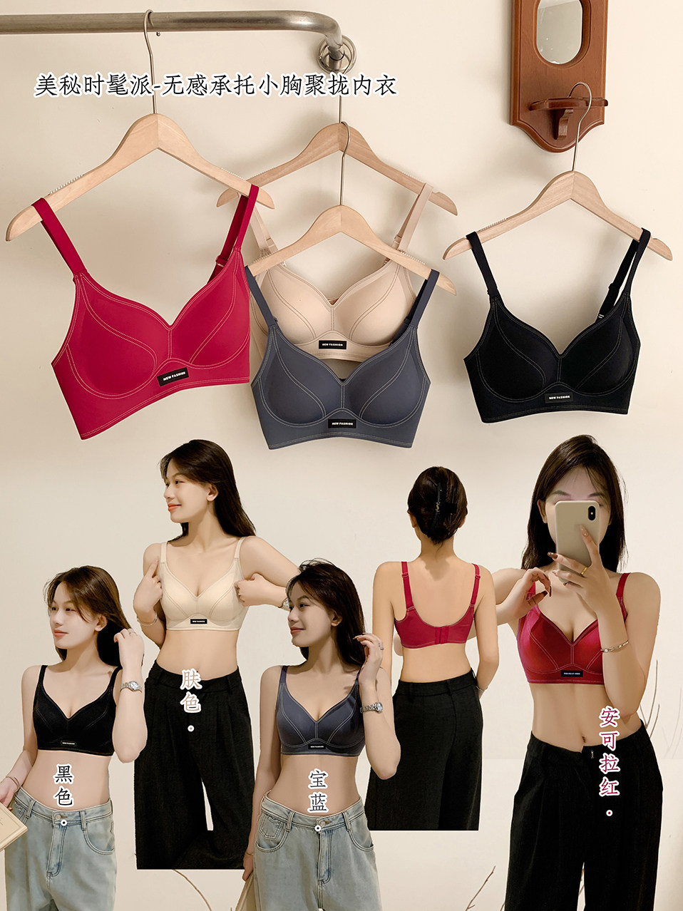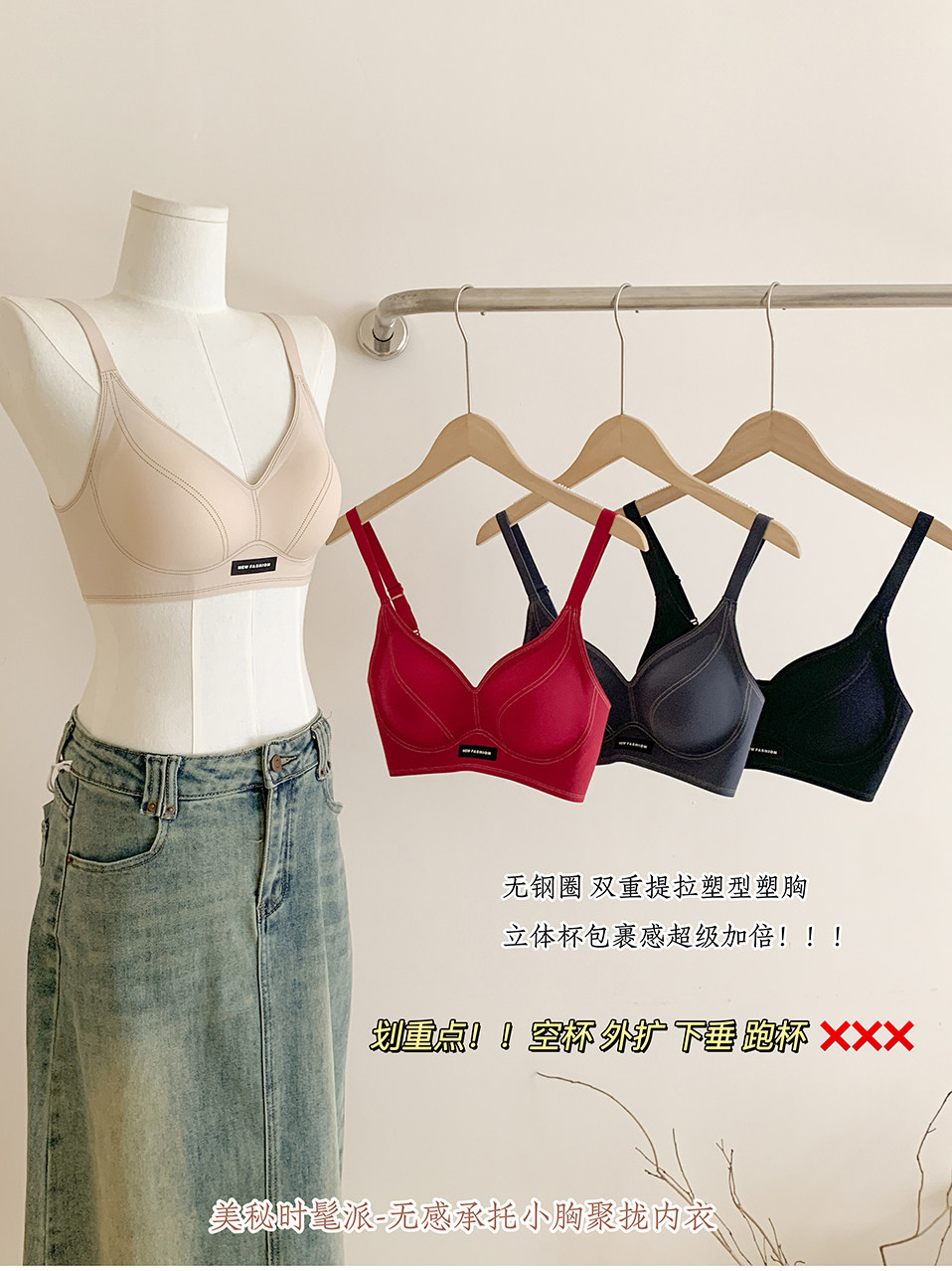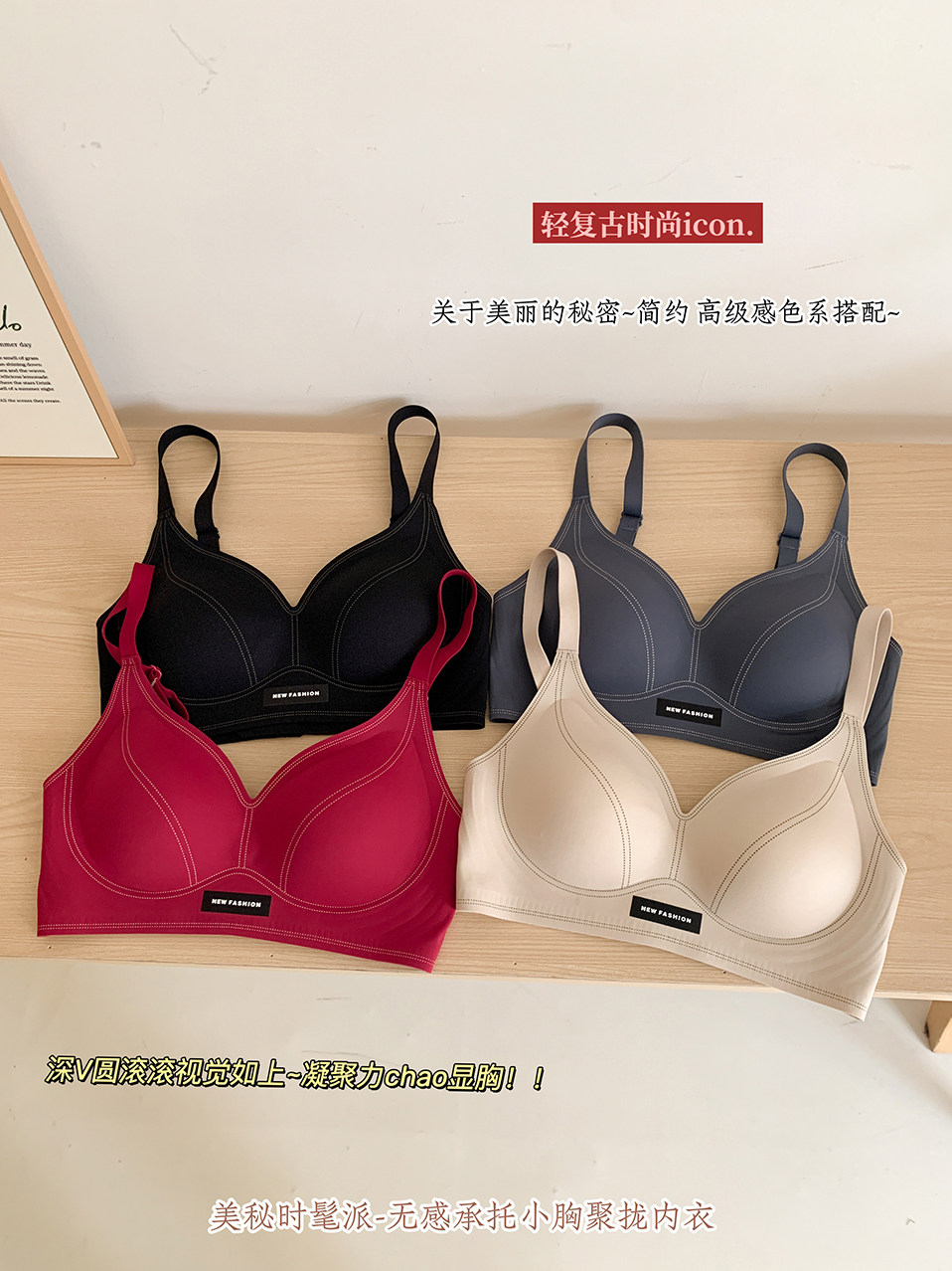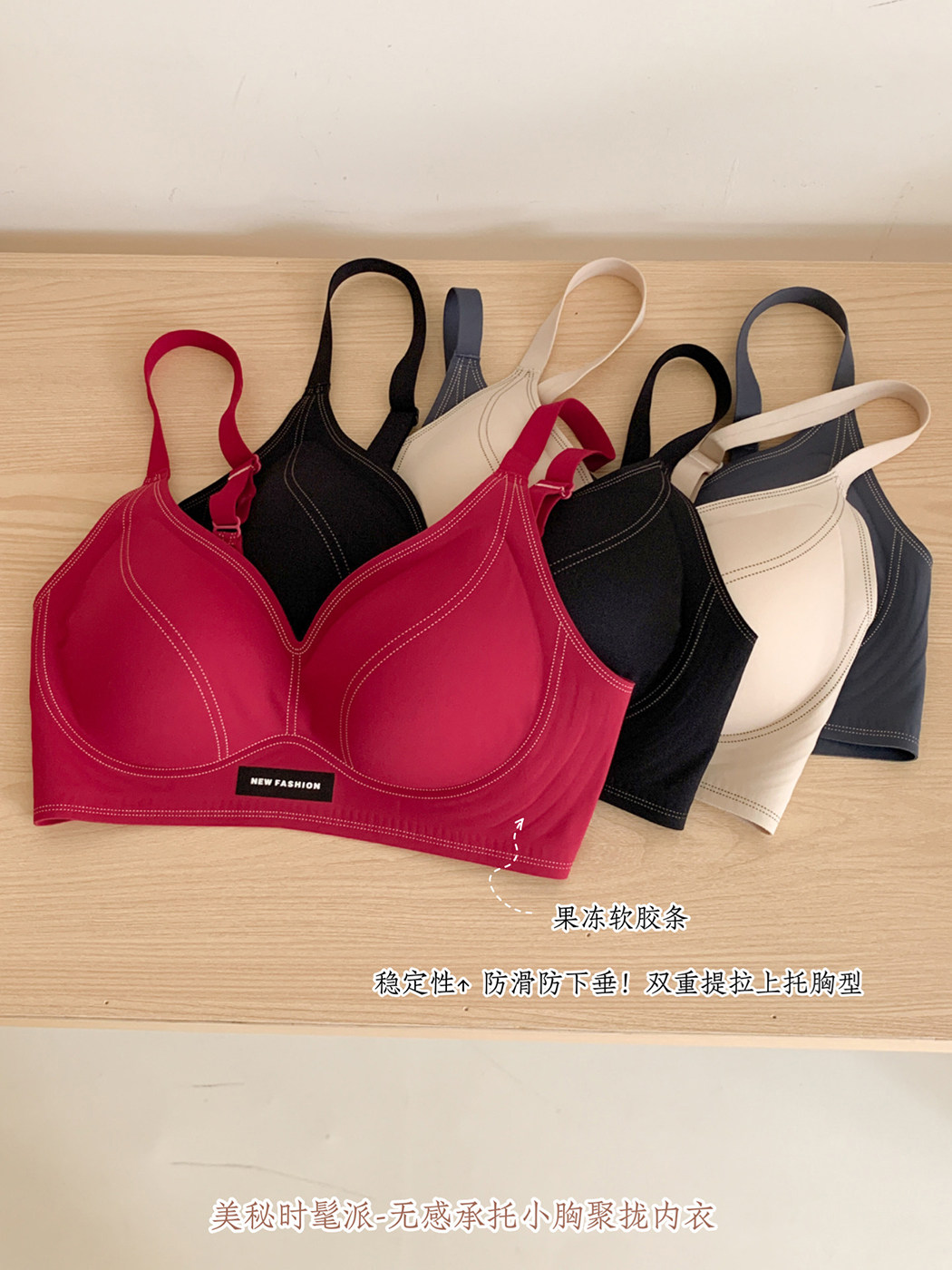 薄款小胸聚攏無痕內衣女士果凍軟支撐防下垂無鋼圈裸感美背文胸罩