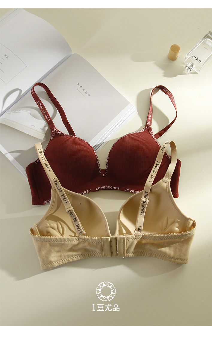 中厚2CM小胸聚攏內衣女無鋼圈收副乳軟支撐上托無痕字母文胸罩