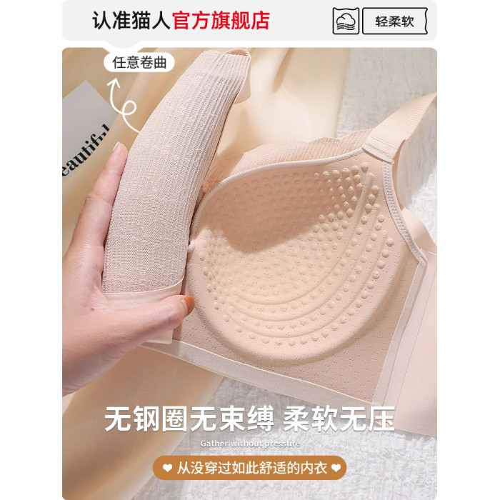 貓人無痕內衣女大胸顯小防下垂側收副乳無鋼圈美背提拉大碼文胸罩
