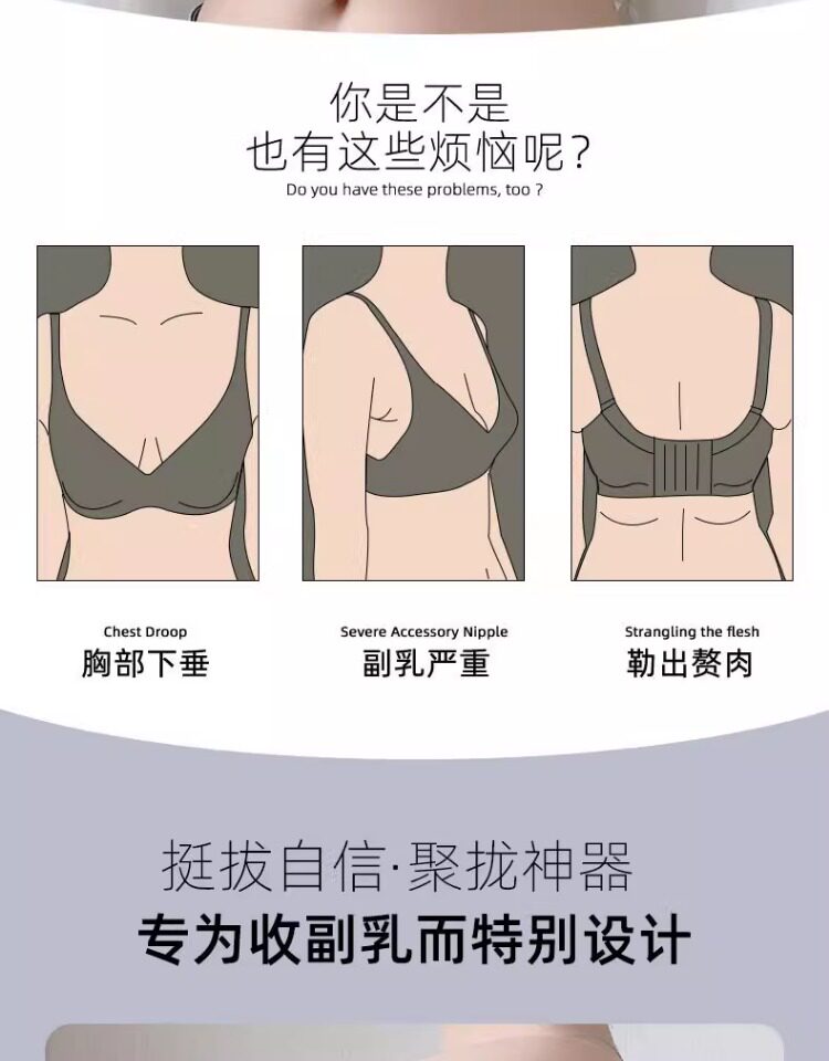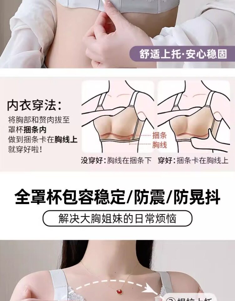 大胸修容顯小內衣女調整型防外擴防下垂矯正聚攏收副乳上托文胸罩